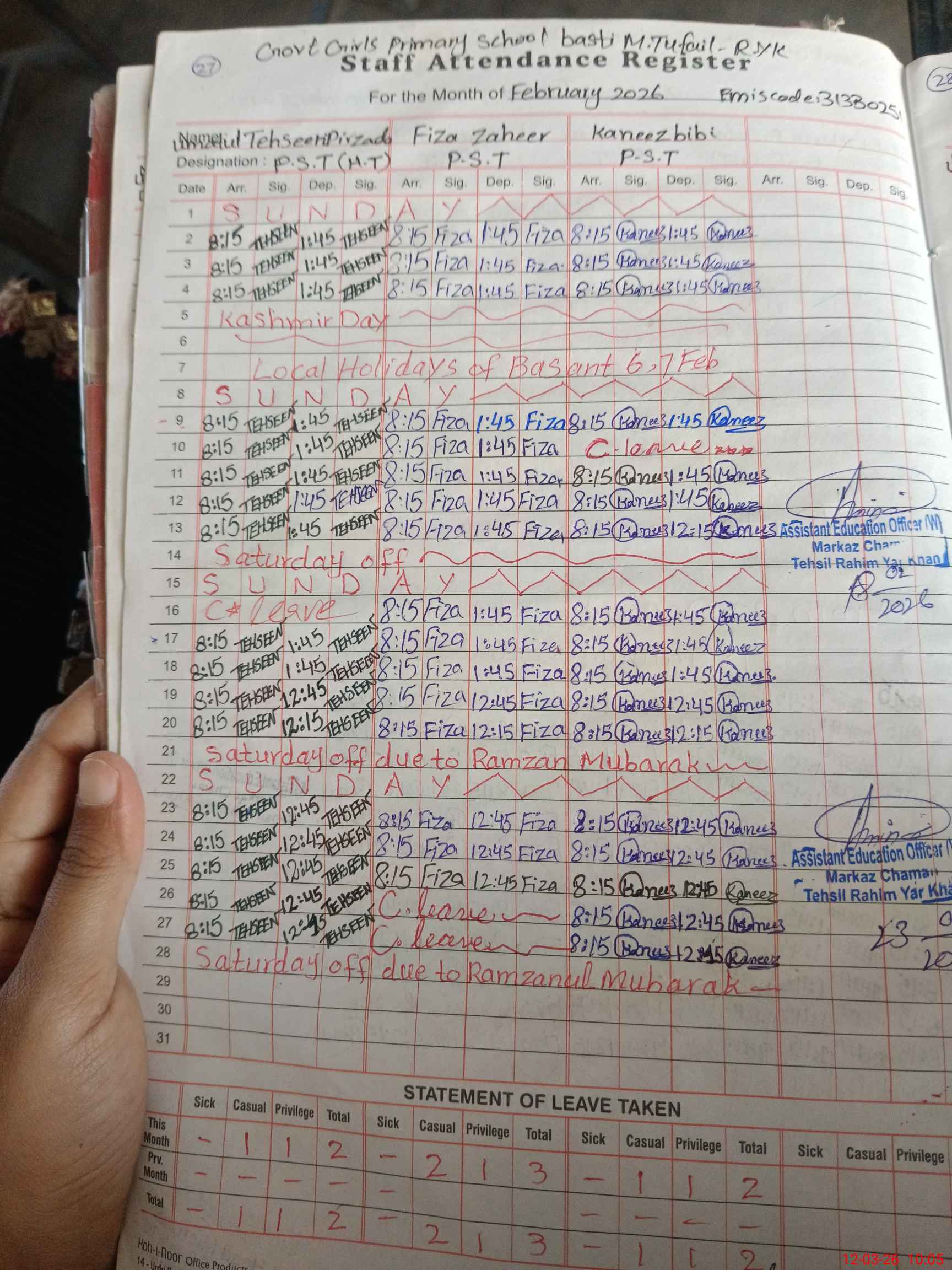 | District: RAHIMYAR KHAN | Tehsil: RAHIMYAR KHAN | Markaz: CHAMAN-FEMALE | Level: Primary | |