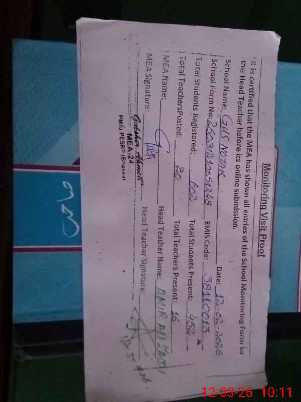| EMIS Code: 38110013 | Name of School: GHS NOTAK | |||