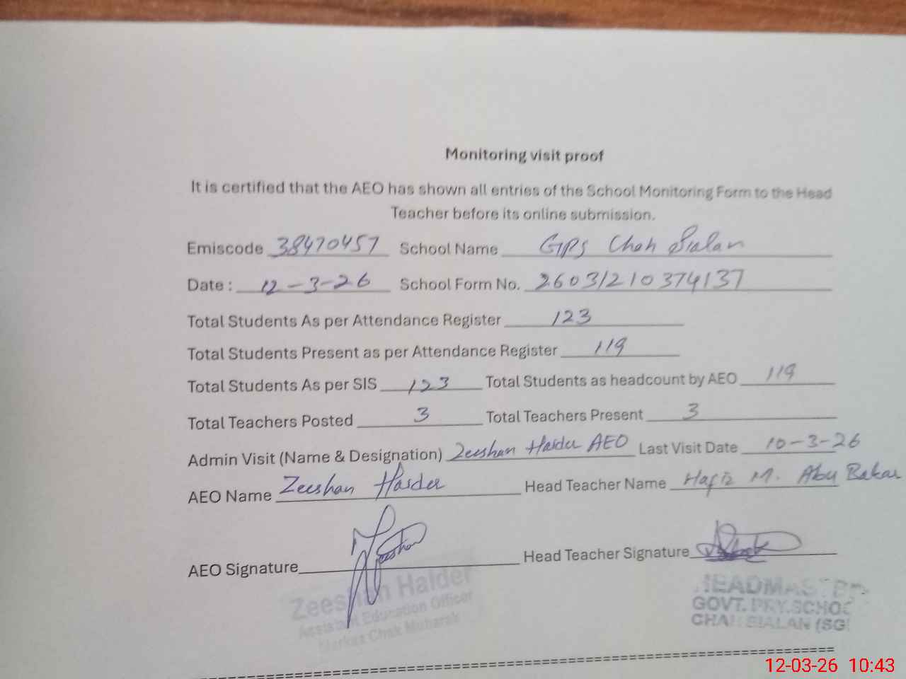| EMIS Code: 38470457 | Name of School: GPS CHAH SIALAN | |||
