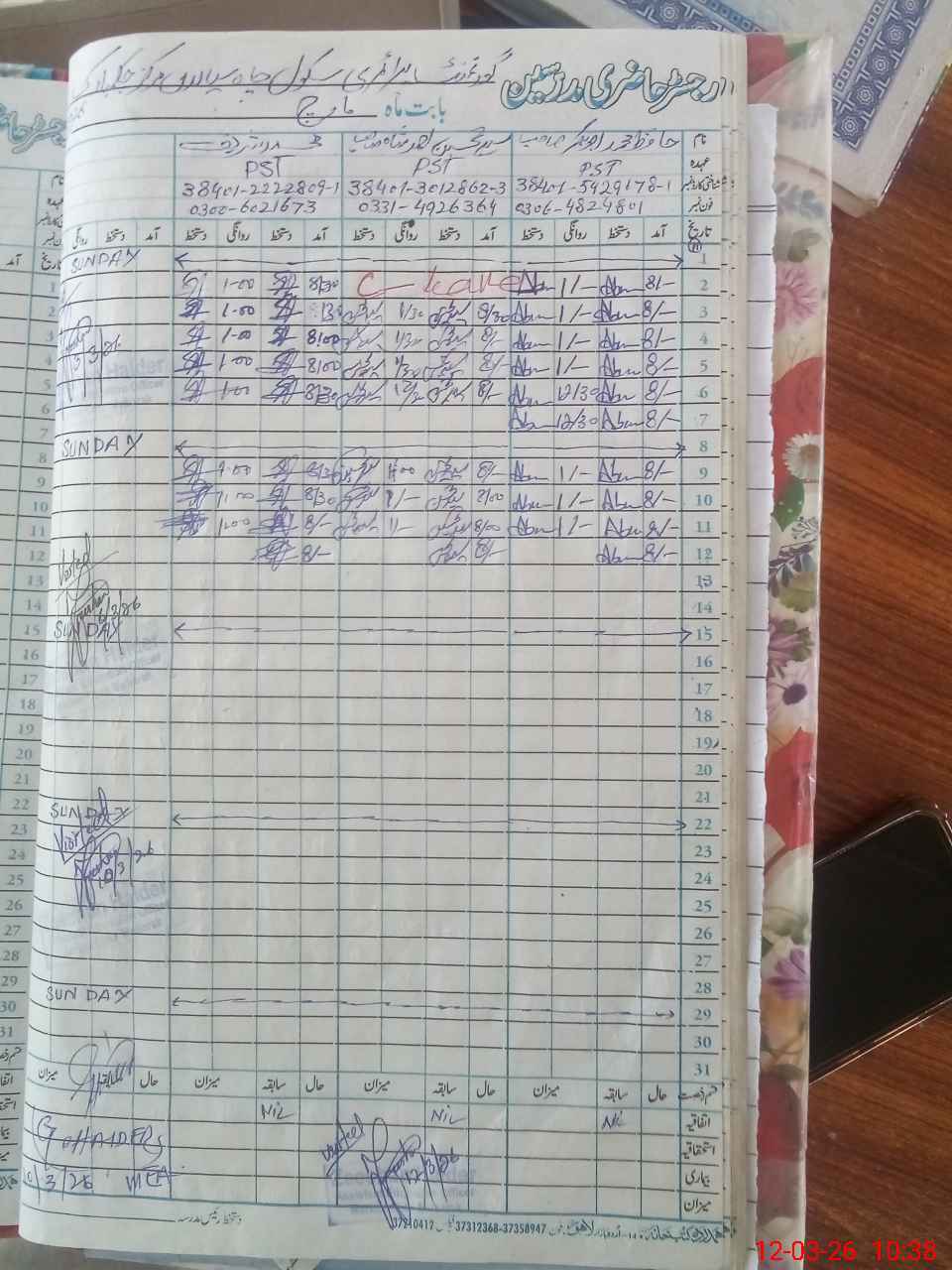 | Name: MAb**** Ba**** Designation: (School Headmaster's/Headmistress's) PST Phone/Cell Number: 03**** |