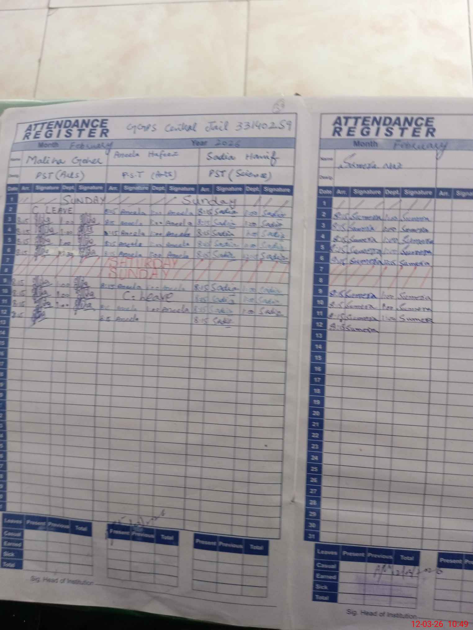 | Leave | Duty | Absent | Maternity | Medical | Ex- Pak |