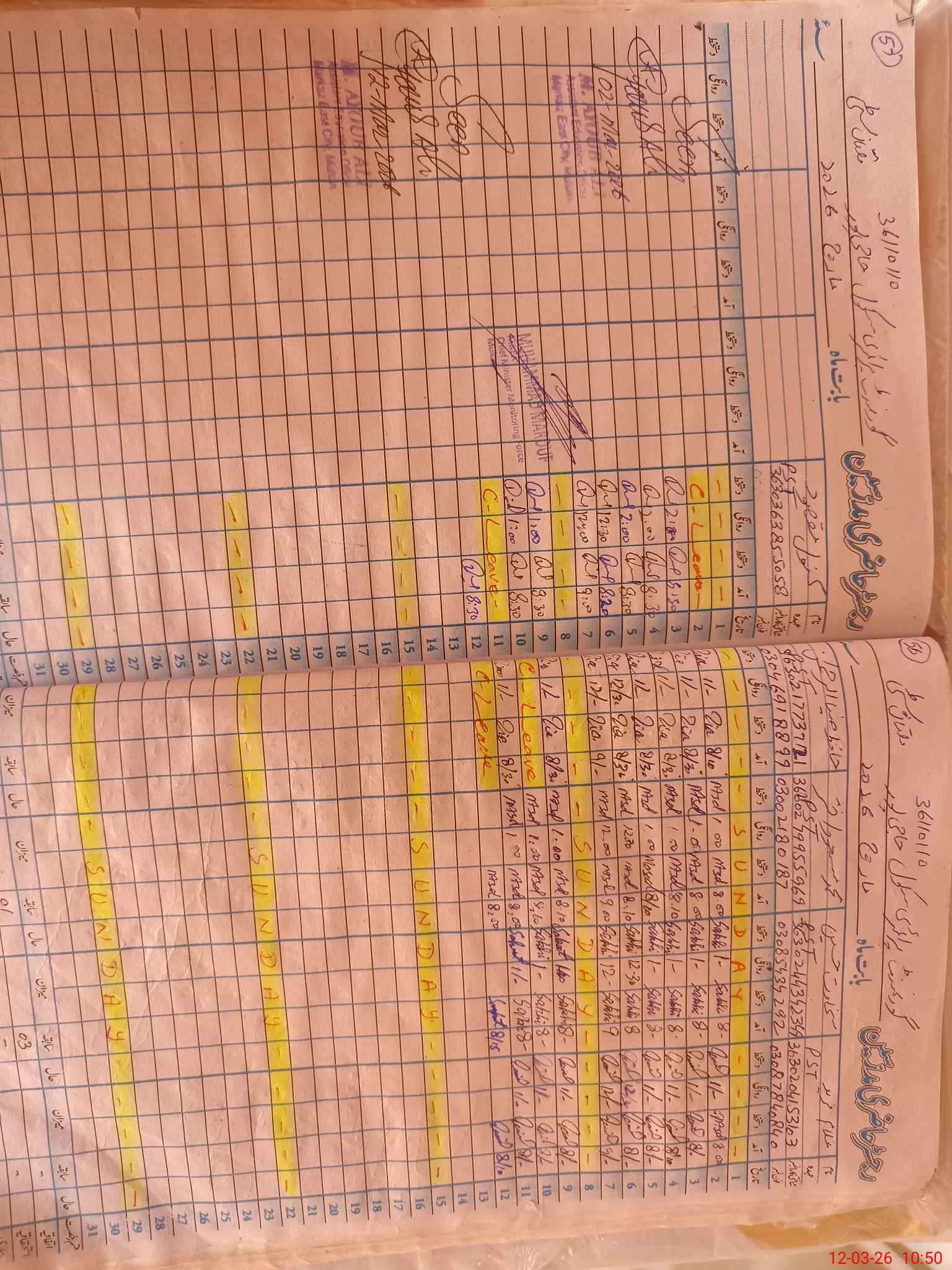 | CNIC | Full Name | Designation | R/C | Absence During Last Calender Month |