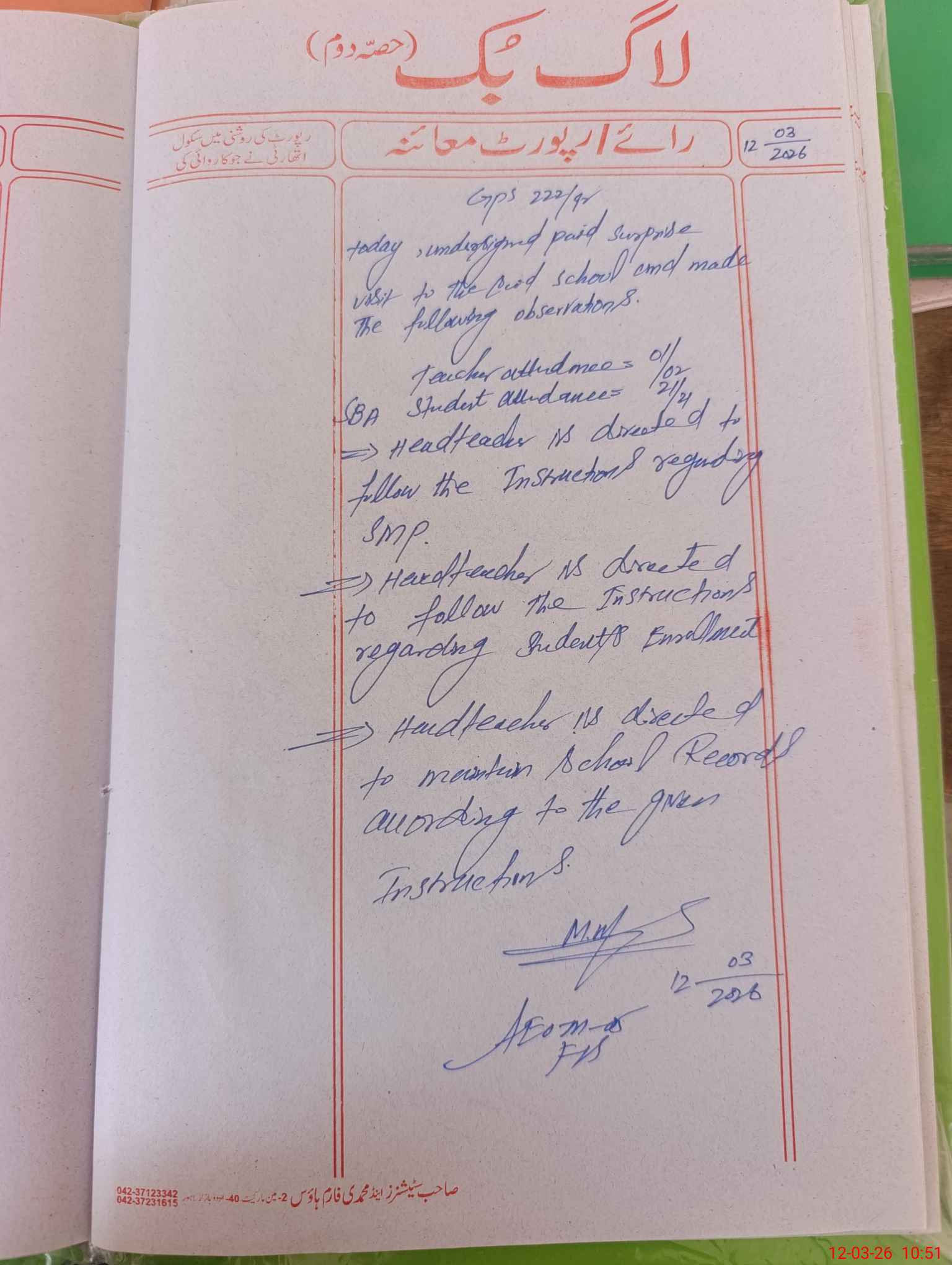 | EMIS Code: 31130162 | Name of School: GPS CHAK NO.222/9-R | |||