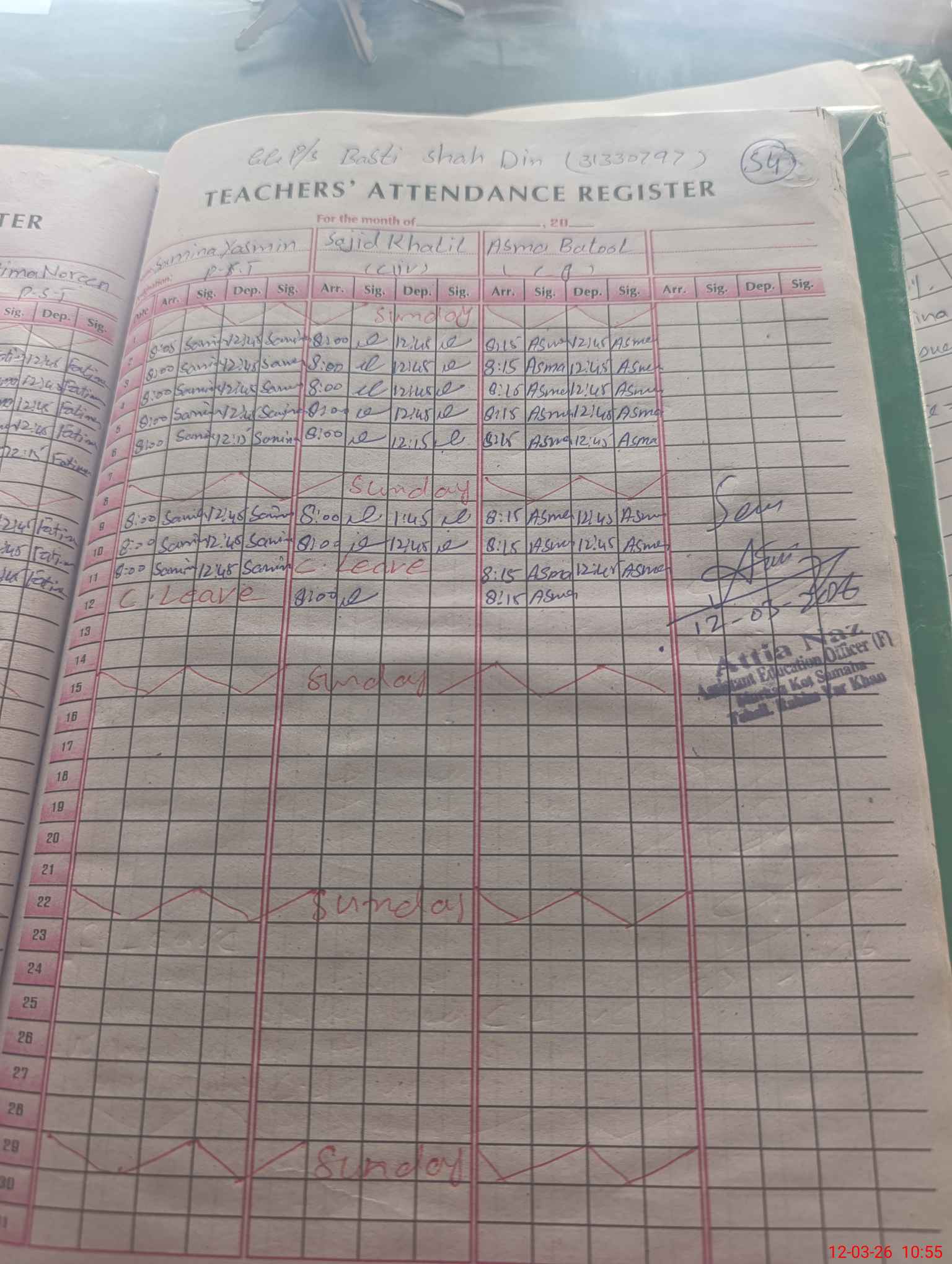 | Name: Na**** Ra**** Designation: (School Headmaster's/Headmistress's) PST Phone/Cell Number: 03**** |