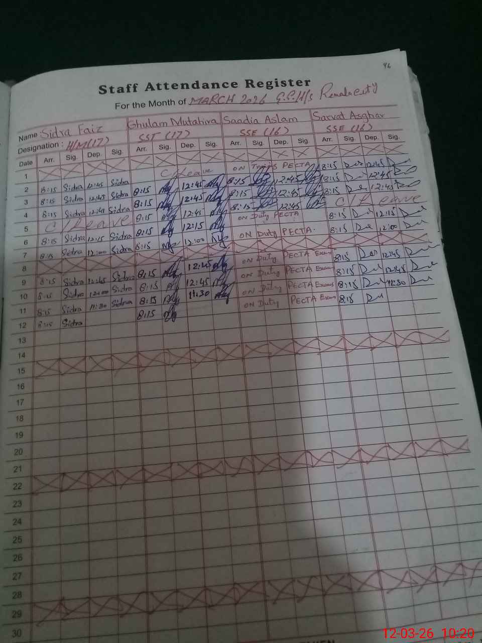 | 35**** | Sa**** As**** | PST Arts | Regular | 1 | 0 | 0 | 0 | 0 | 0 | 0 | 0 | 1 | Exam Duty |