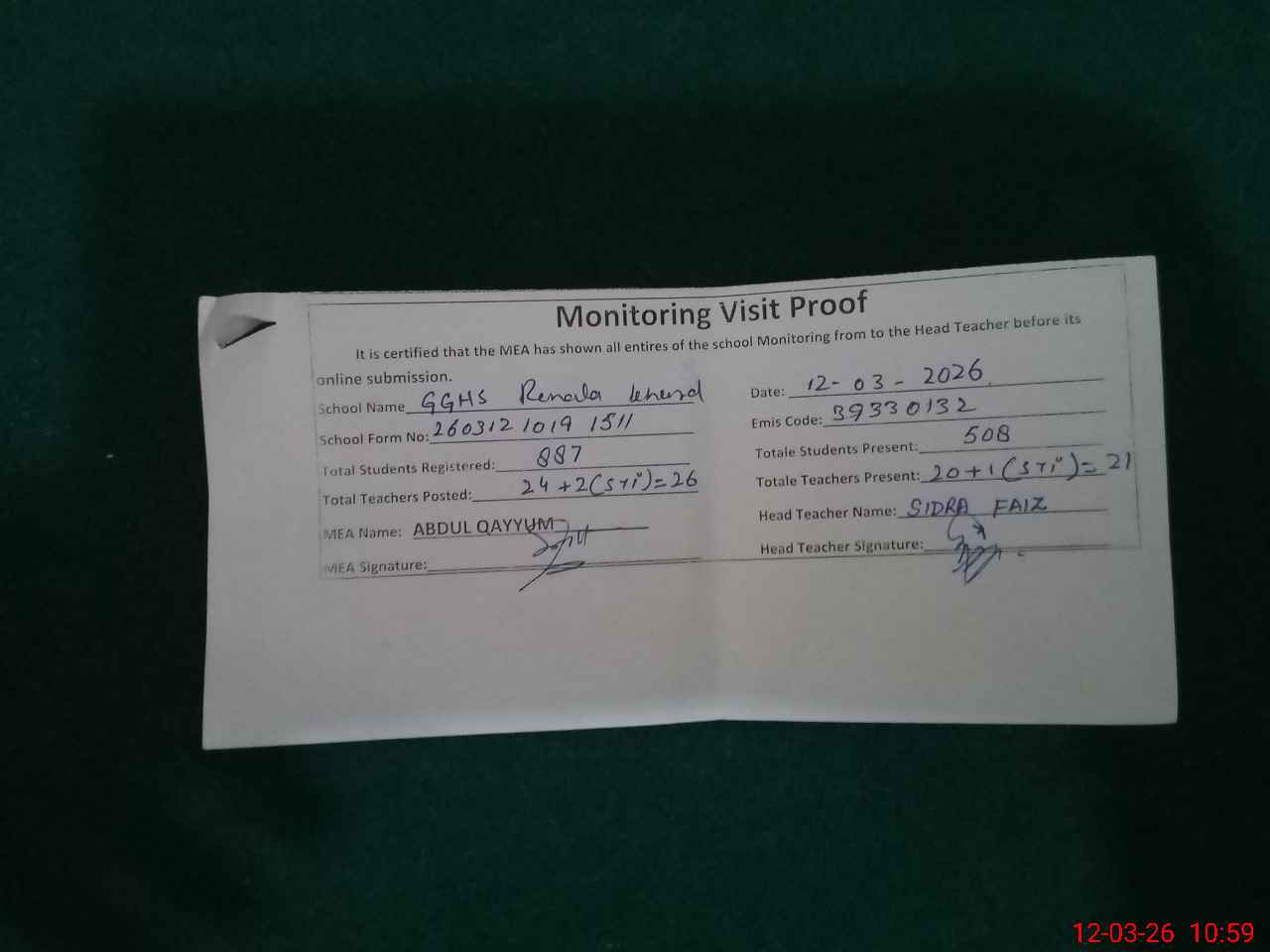 | EMIS Code: 39330132 | Name of School: GGHS RENALA CITY | |||