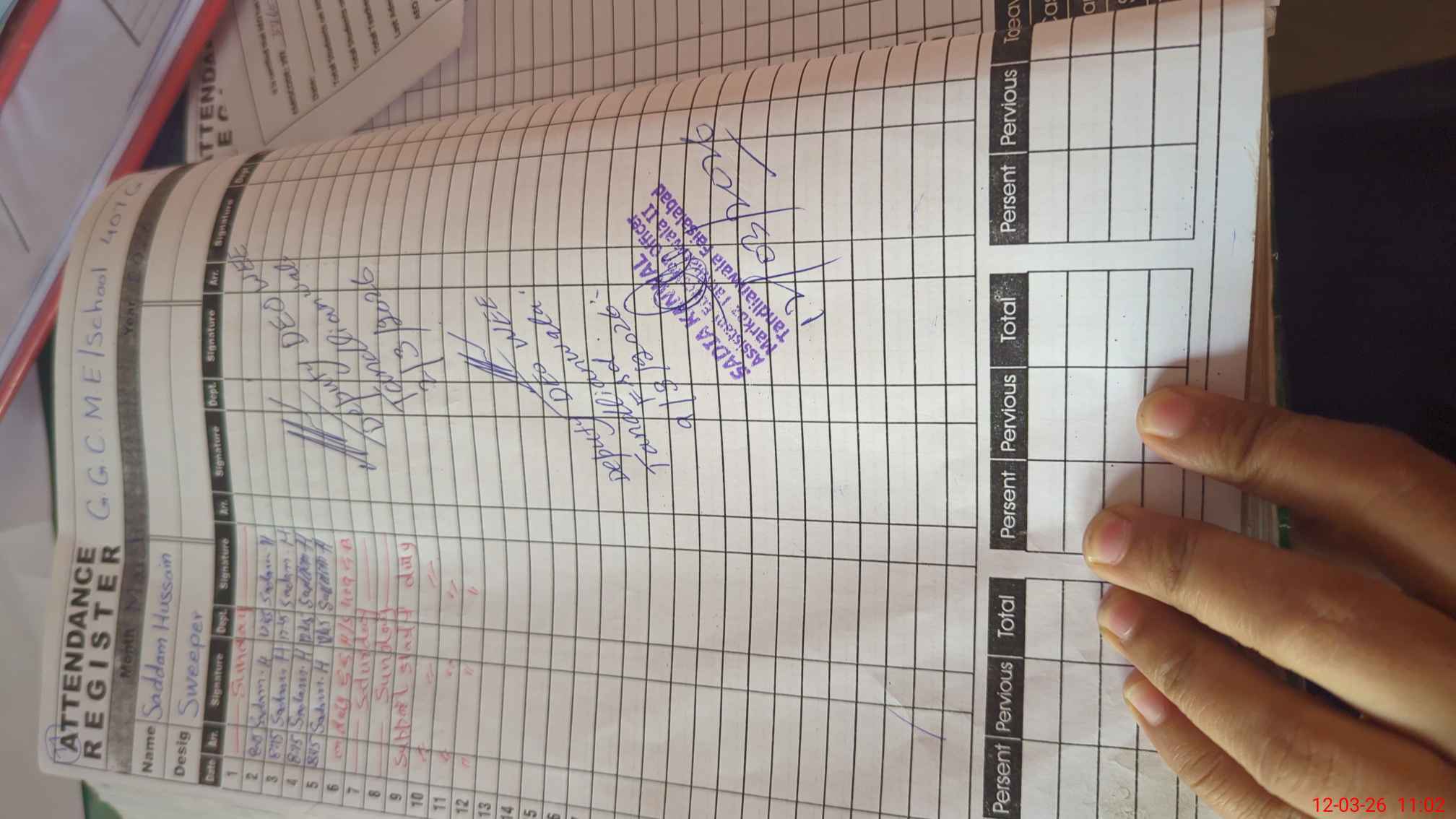| CNIC | Full Name | Designation | R/C | Absence During Last Calender Month |
