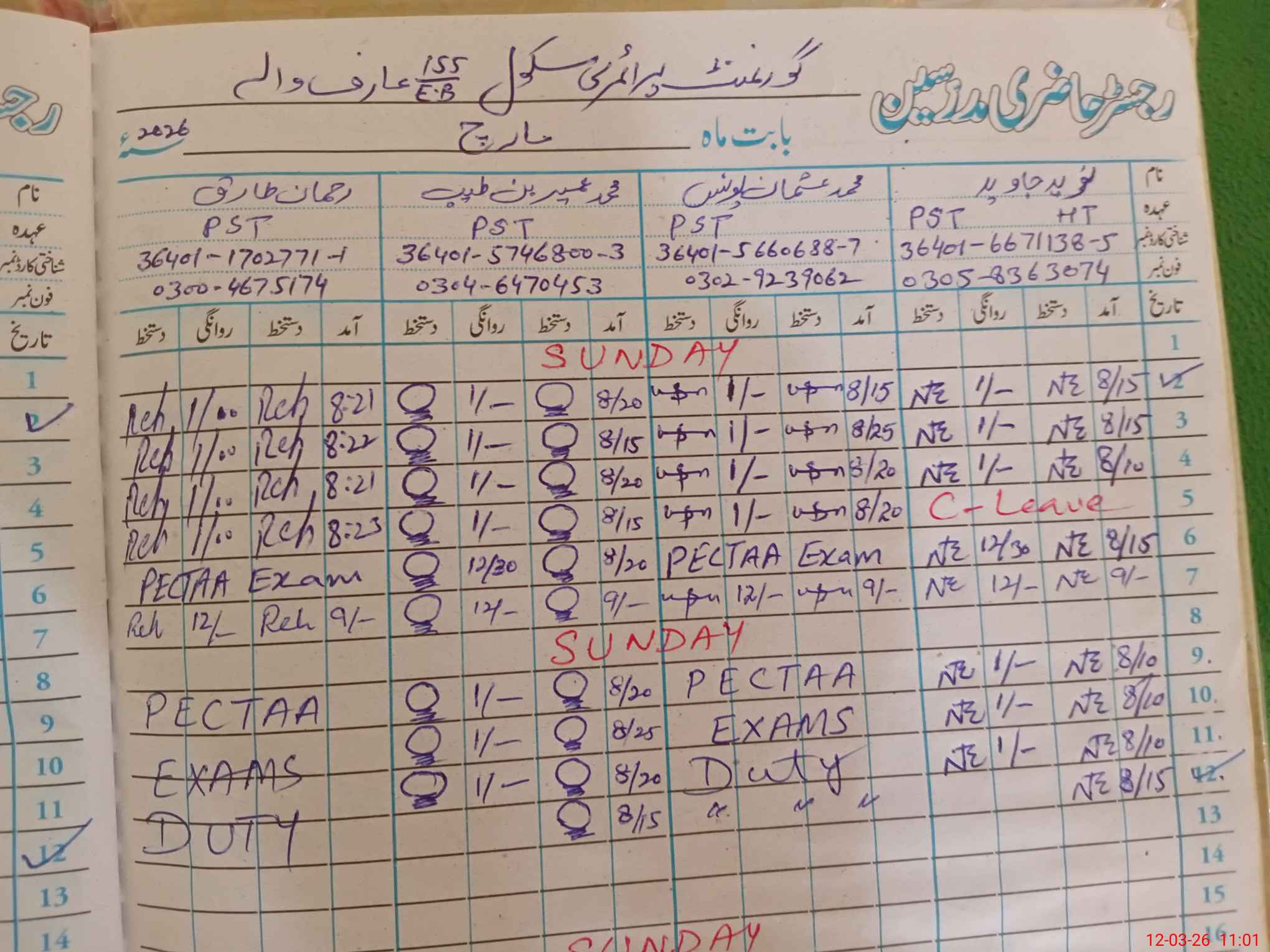 | 36**** | Mu**** Us**** Yo**** | PST | Regular | 0 | 0 | 0 | 0 | 0 | 0 | 0 | 0 | 0 | Exam Duty |