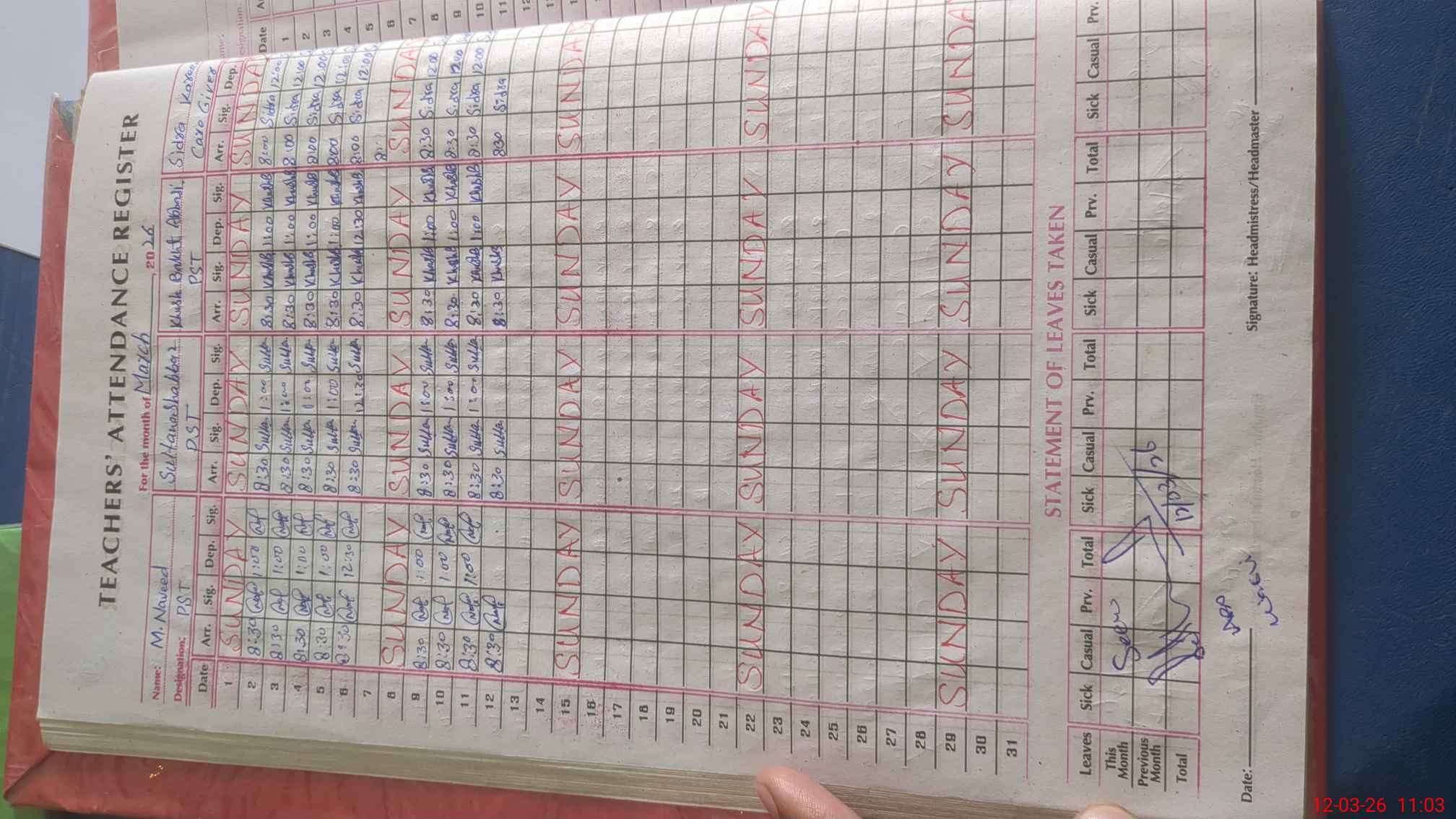 | Name: Su**** Sh**** Designation: (School Headmaster's/Headmistress's) P S T Phone/Cell Number: 03**** |