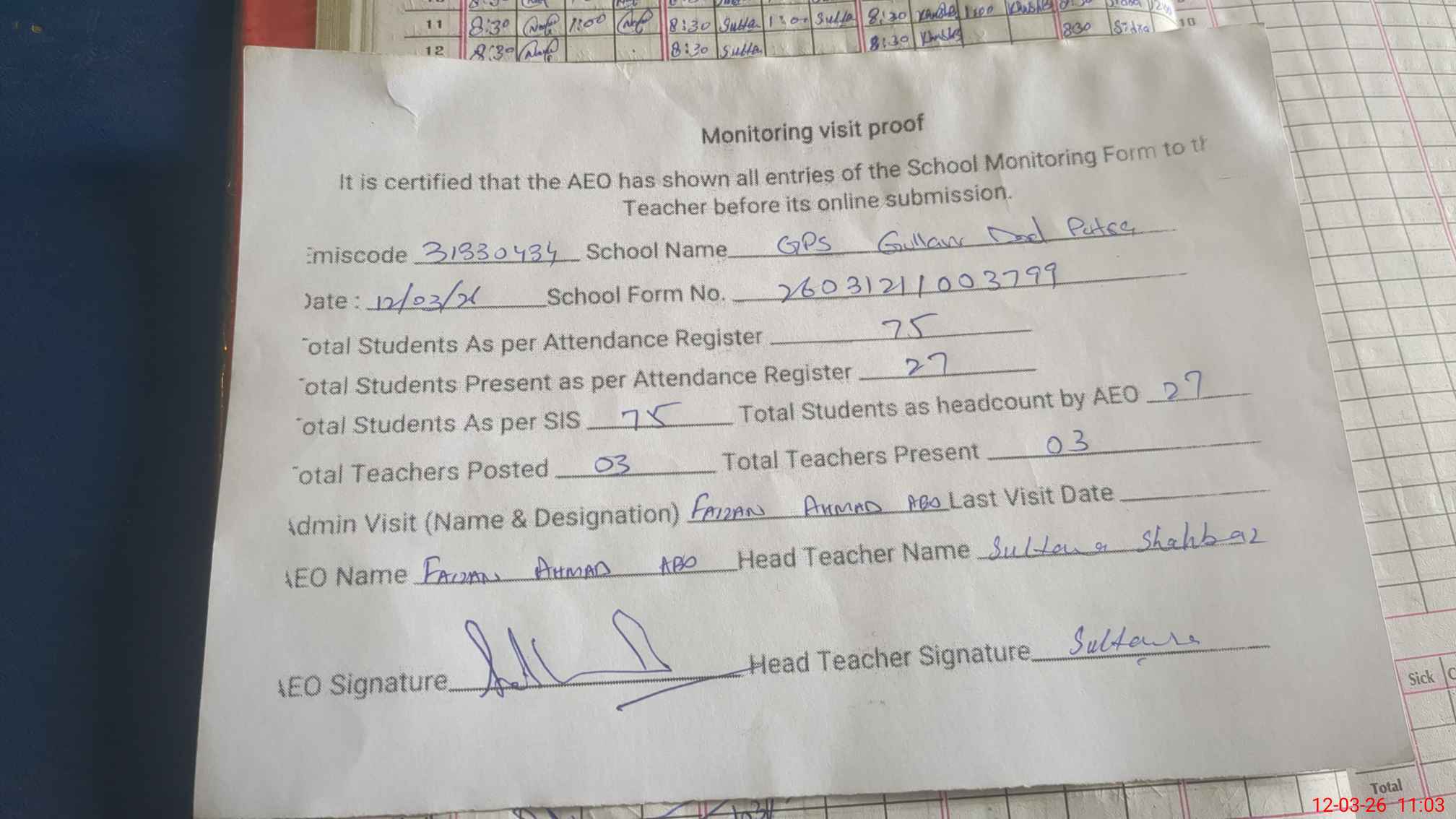 | EMIS Code: 31330434 | Name of School: GPS GULLAN DAD PUTRA | |||