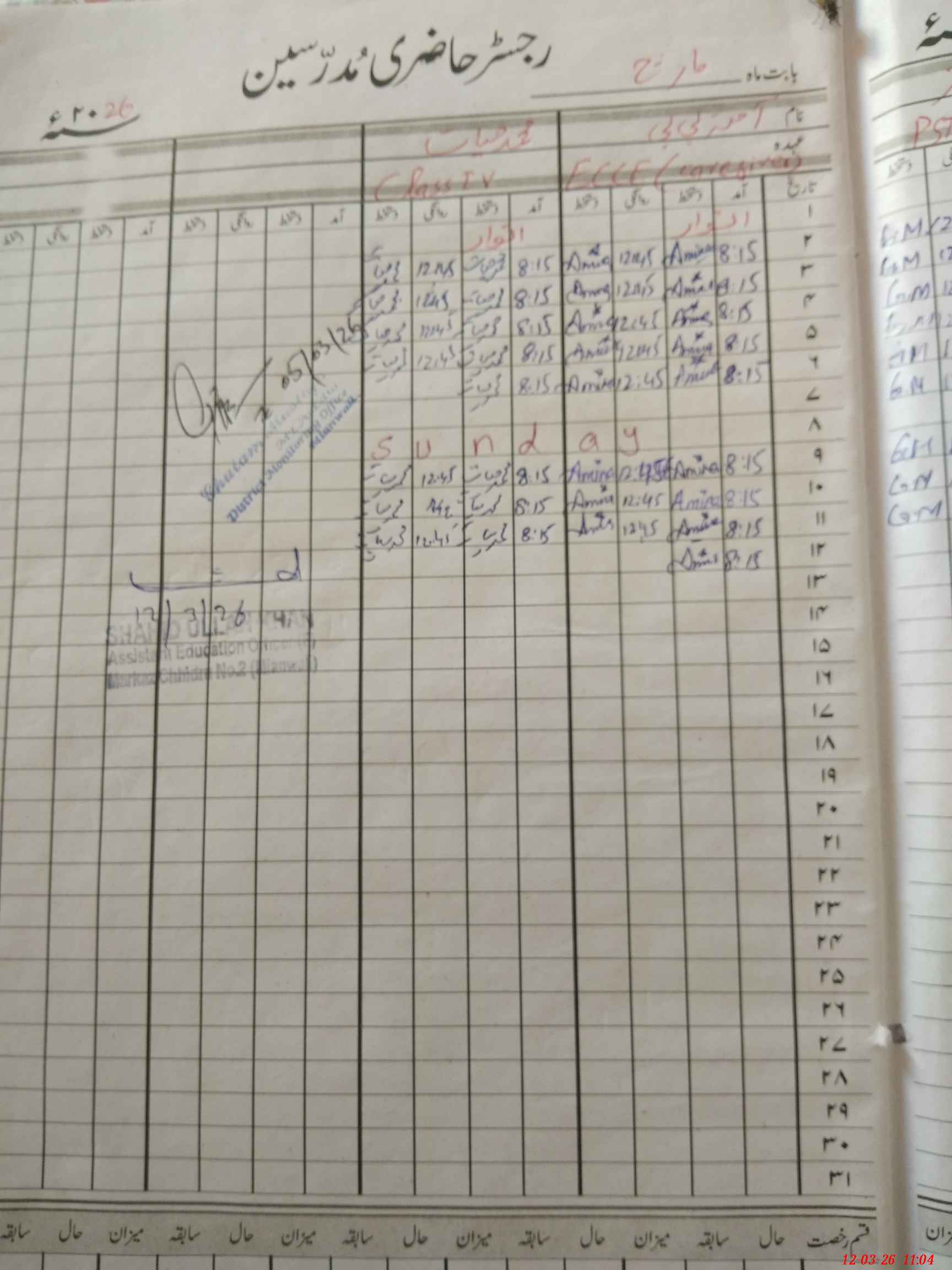 | Monitoring Date: 12-03-2026 | Start Time: 12-03-2026 10:37 AM | End Time: 12-03-2026 11:04 AM | Name of MEA: Sh**** Ul**** Kh**** | |