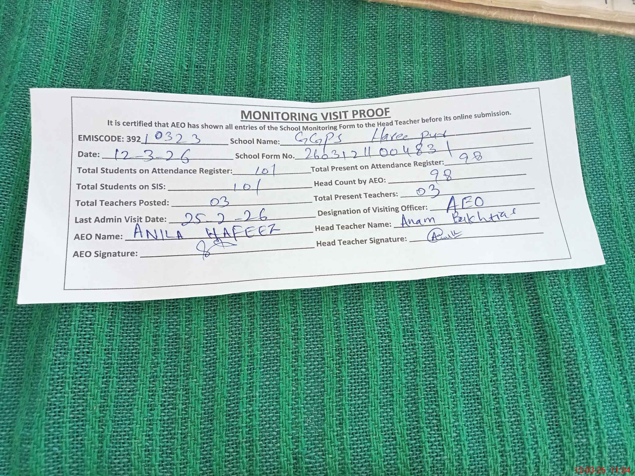 | EMIS Code: 39210323 | Name of School: GGPS HAREE PUR | |||