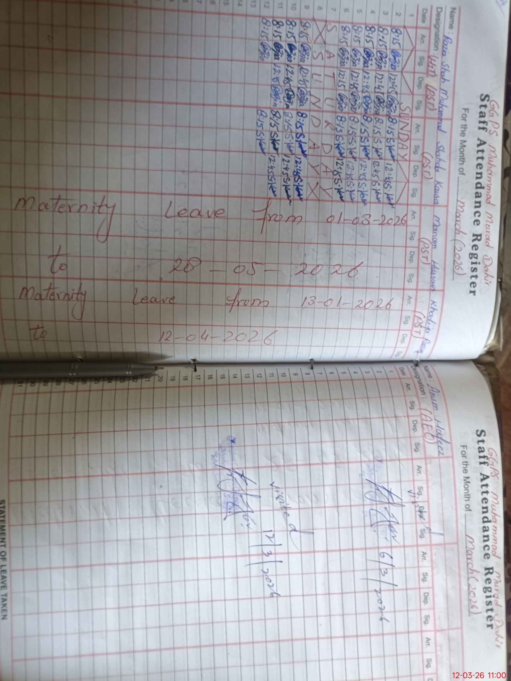 | Leave | Duty | Absent | Maternity | Medical | Ex- Pak |