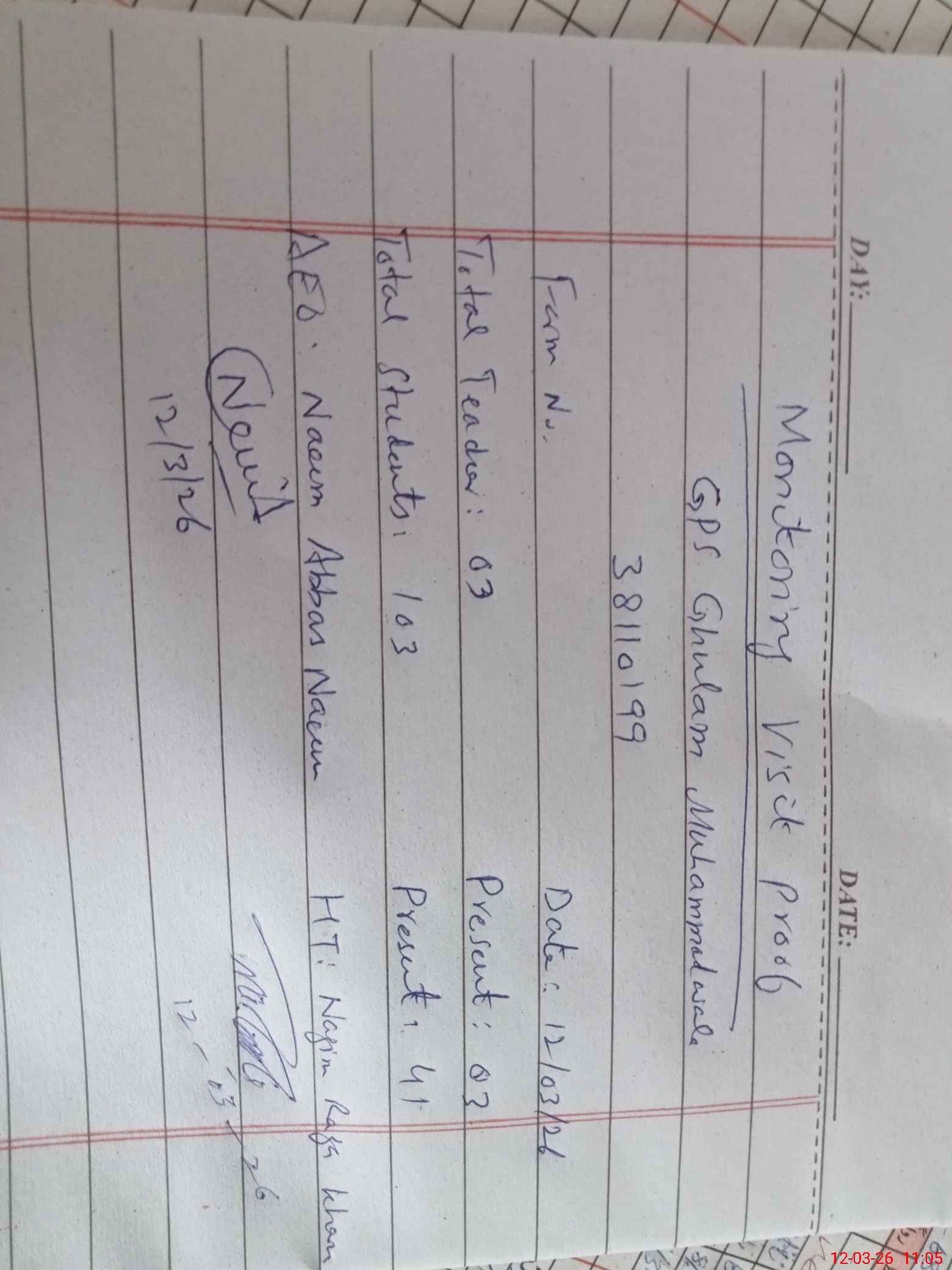 | EMIS Code: 38110199 | Name of School: GPS GHULAM MUHAMMAD WALA PO KHANSAR | |||