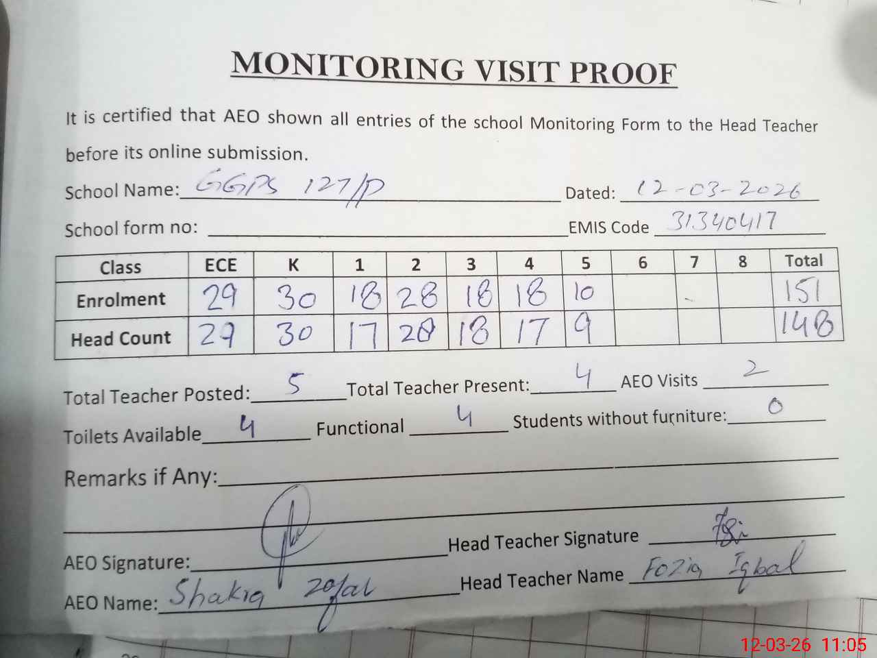 | EMIS Code: 31340417 | Name of School: GGPS 127/P | |||