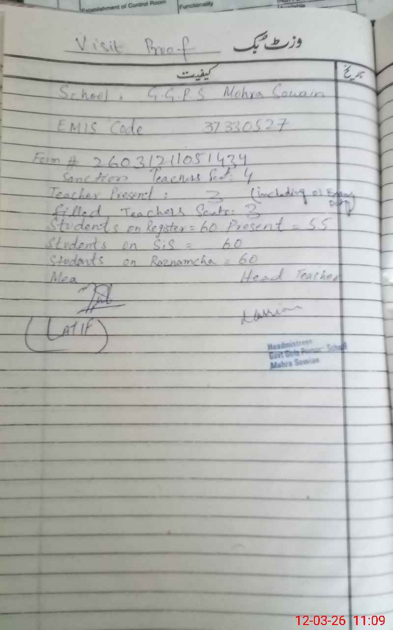 | EMIS Code: 37330527 | Name of School: GGPS MOHRA SWAIAN | |||