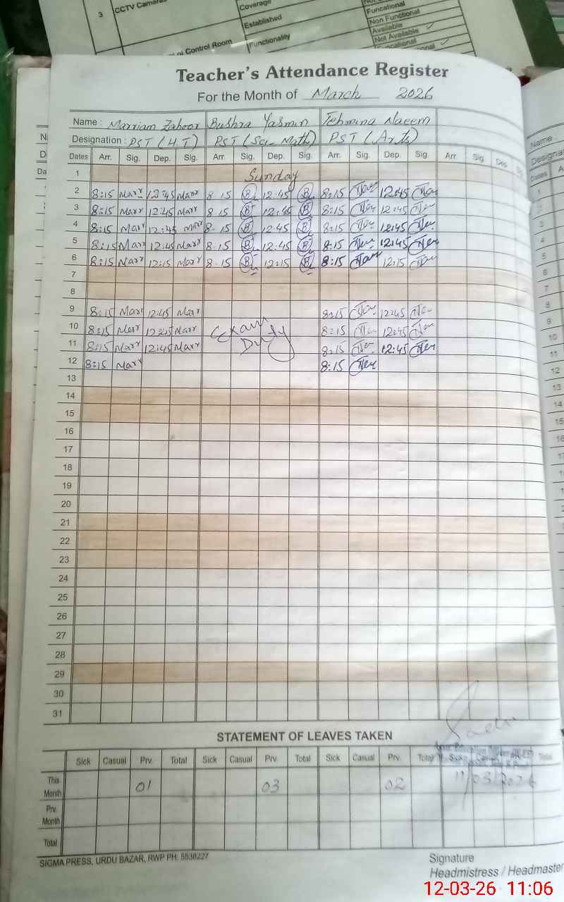| 61**** | Bu**** Ya**** | PST Science/Maths | Regular | 0 | 0 | 0 | 0 | 0 | 0 | 0 | 0 | 0 | Exam Duty |