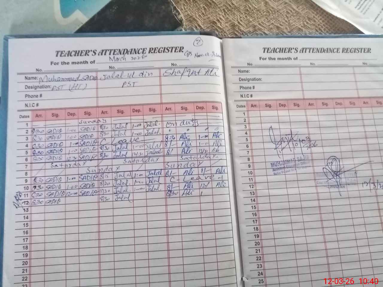 | Name: Mu**** Sa**** Designation: (School Headmaster's/Headmistress's) PST/PTC/JV Phone/Cell Number: 03**** |
