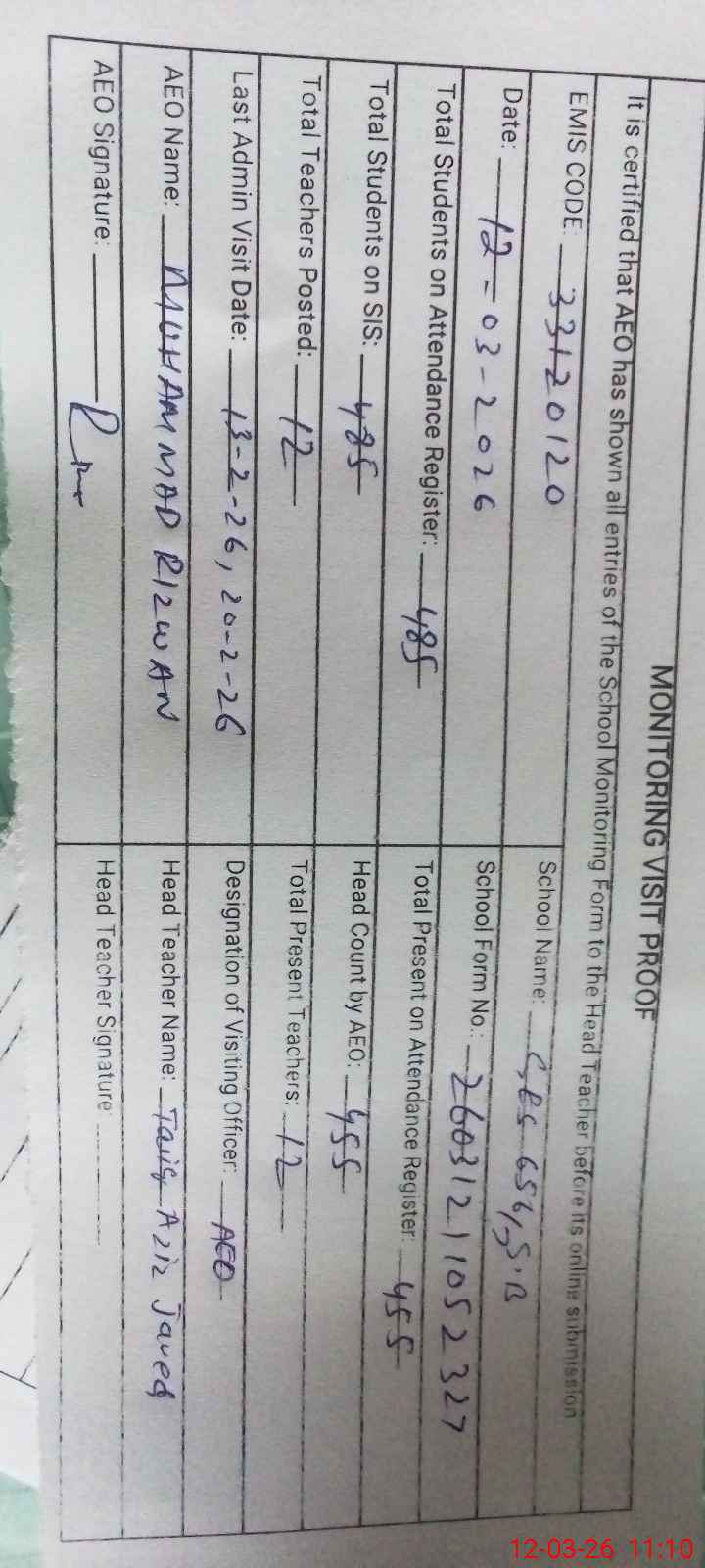 | EMIS Code: 33120120 | Name of School: GES CHAK 656/7 GB II | |||