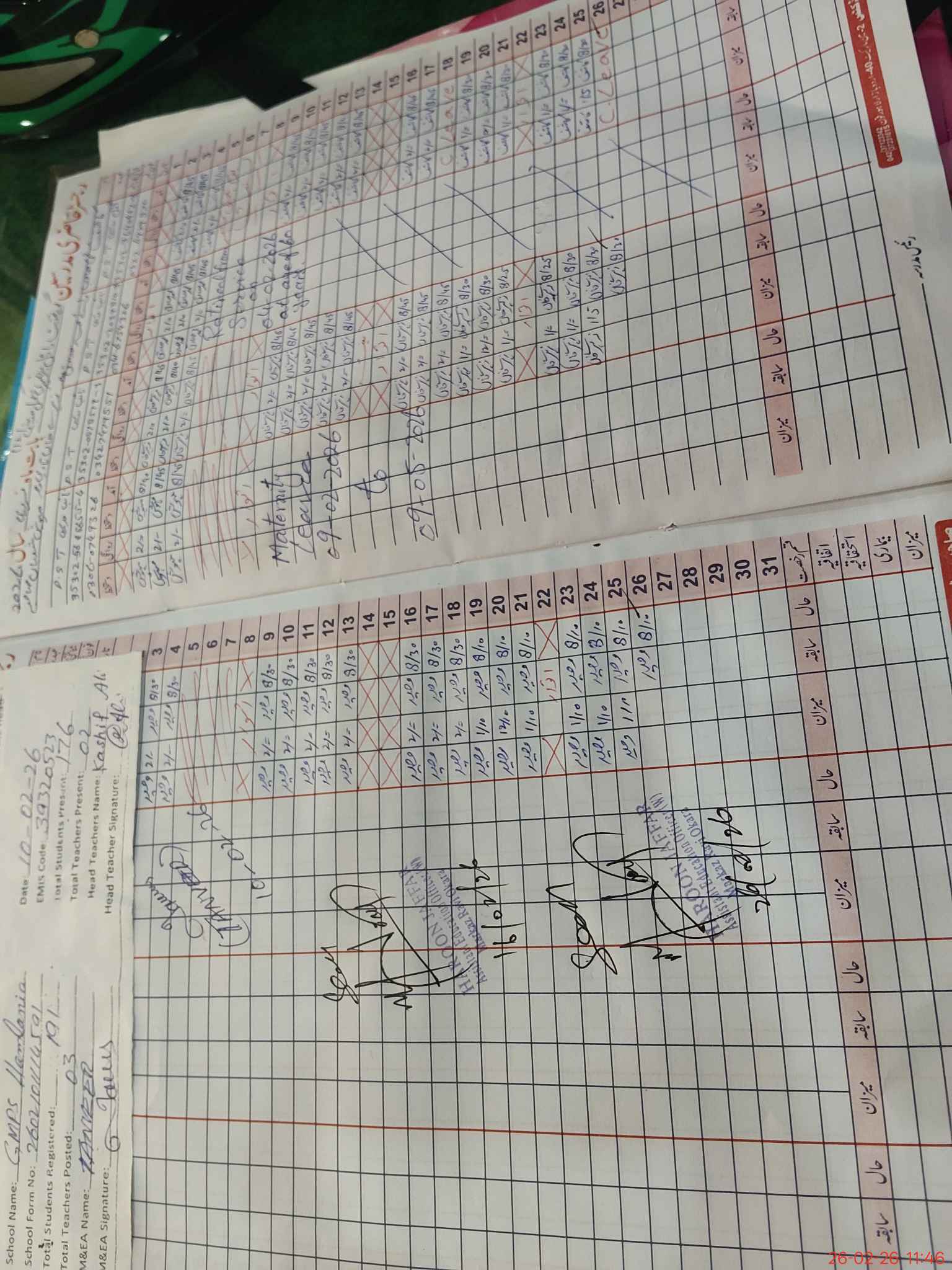 | Attendance Register | Head Teacher | MEA with School | Visit Proof |