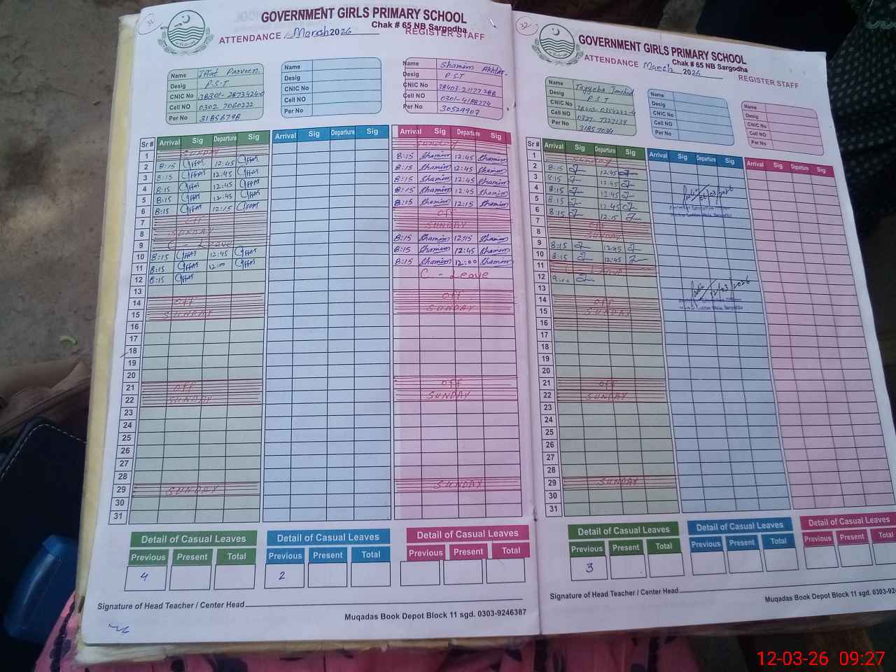 | Name: IF**** PA**** Designation: (School Headmaster's/Headmistress's) PST Phone/Cell Number: 03**** |
