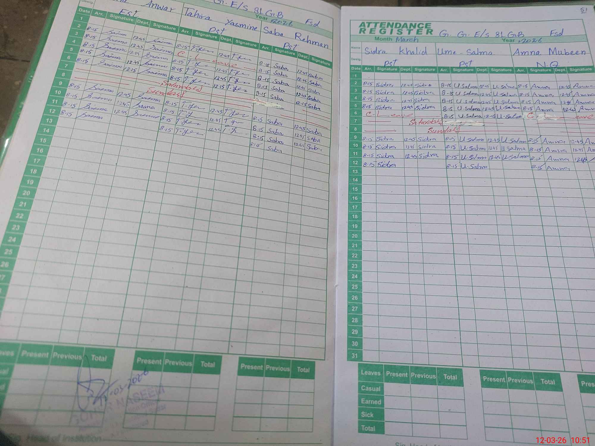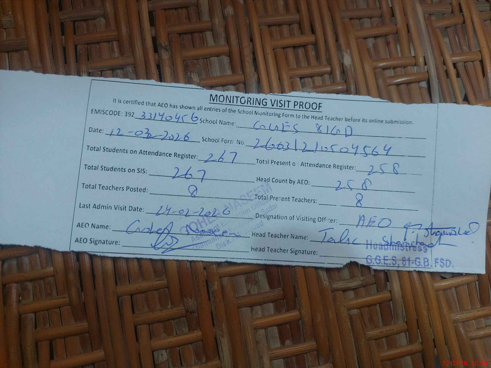 | Attendance Register | Head Teacher | MEA with School | Visit Proof |