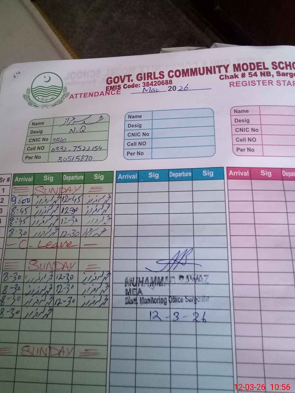| Name: NA**** SH**** Designation: (School Headmaster's/Headmistress's) SST (Bio-Chm) Phone/Cell Number: 03**** |