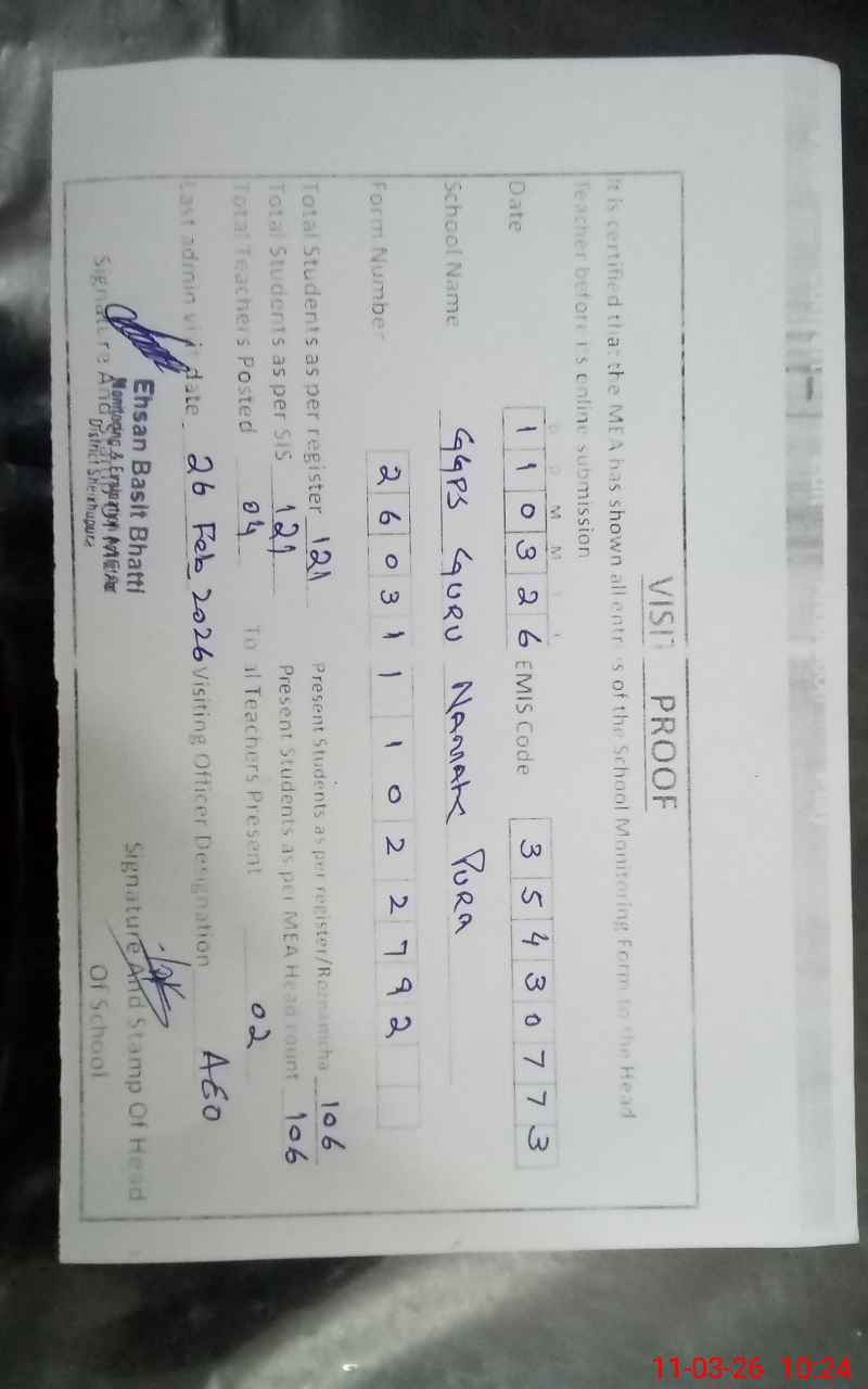 | EMIS Code: 35430773 | Name of School: GGPS GURU NANAK PURA | |||