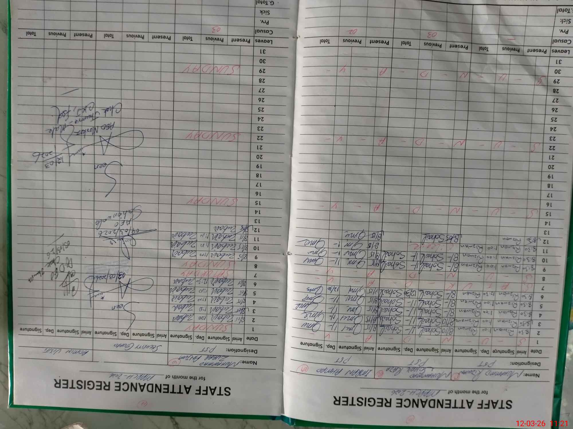 | CNIC | Full Name | Designation | R/C | Absence During Last Calender Month |