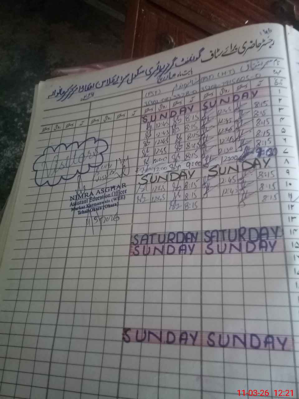 | District: OKARA | Tehsil: OKARA | Markaz: KARMAN WALA - FEMALE | Level: Primary | |