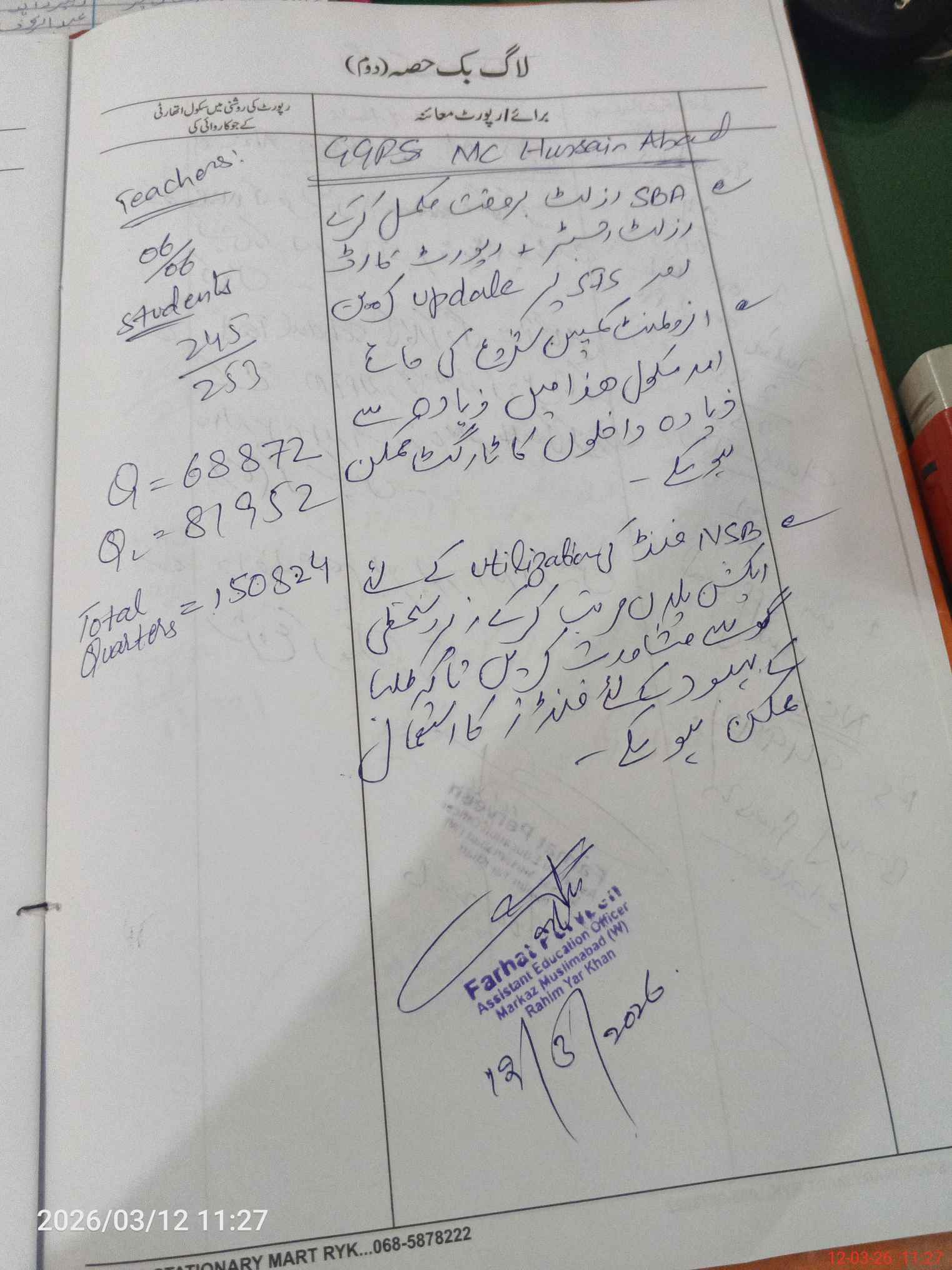| EMIS Code: 31331096 | Name of School: GGPS MC HUSSAIN ABAD | |||