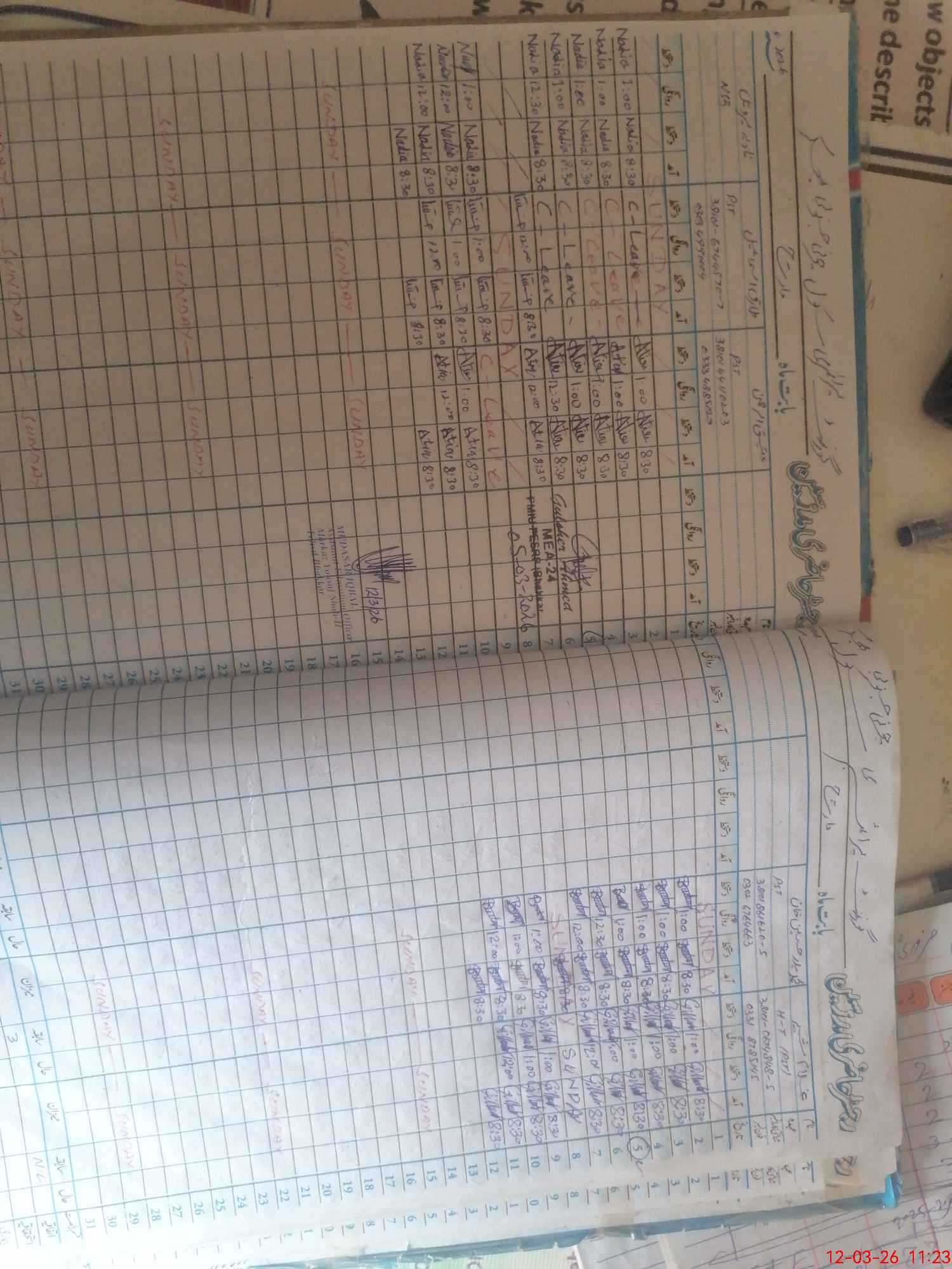 | Leave | Duty | Absent | Maternity | Medical | Ex- Pak |