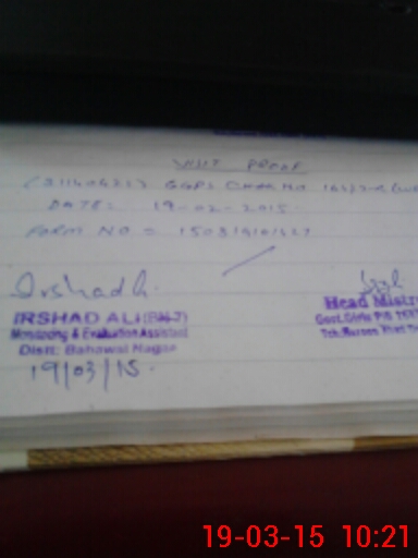 | District: BAHAWALNAGAR | Tehsil: HAROONABAD | Markaz: HND-15-FEMALE | Level: Primary | |
