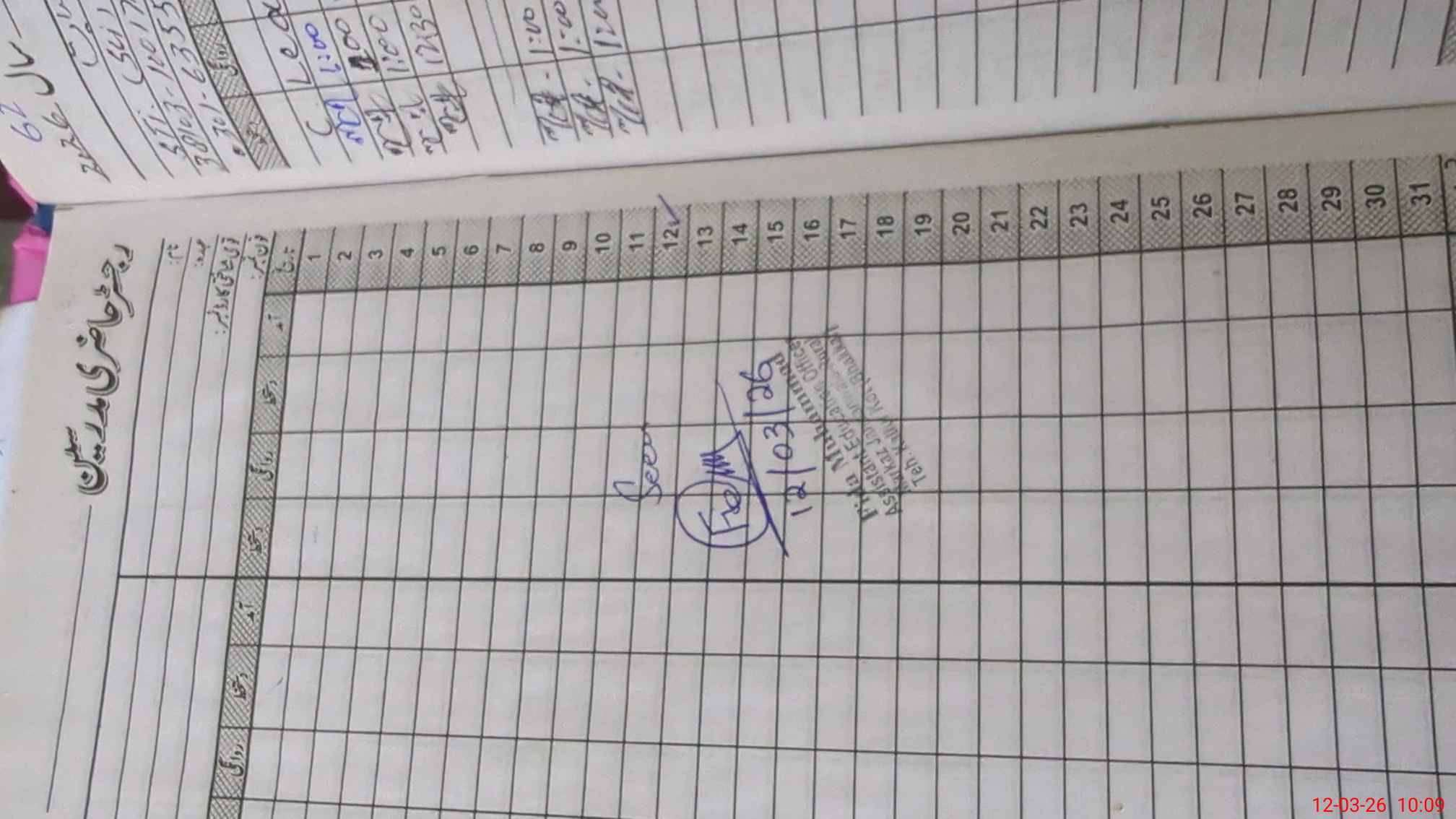 | CNIC | Full Name | Designation | R/C | Absence During Last Calender Month |