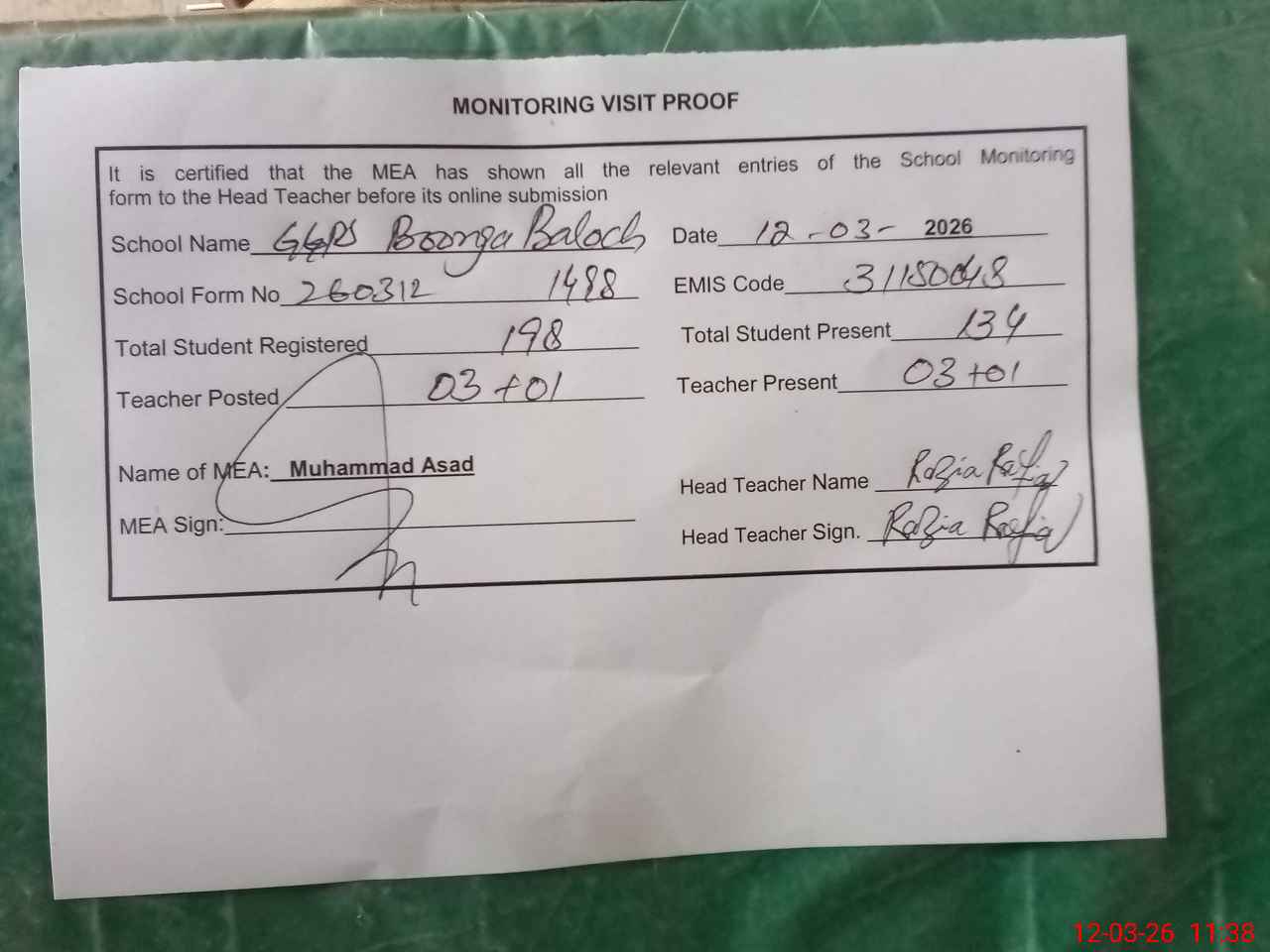 | EMIS Code: 31150048 | Name of School: GGPS BONGA BALOCHAAN | |||