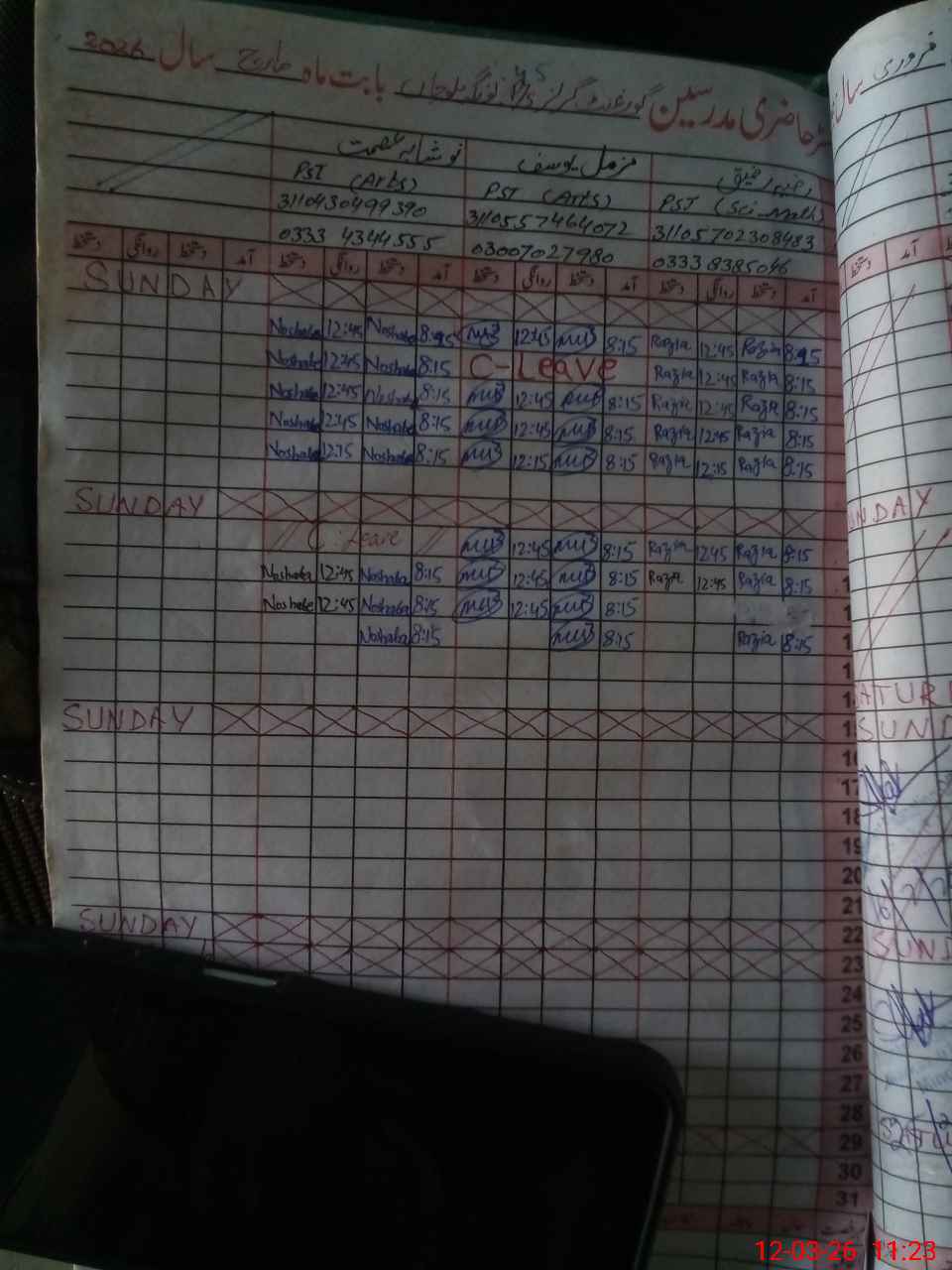 | Name: RA**** RA**** Designation: (School Headmaster's/Headmistress's) PST Phone/Cell Number: 03**** |