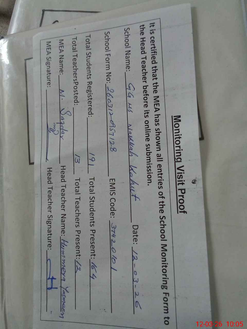 | EMIS Code: 37420101 | Name of School: GGHS NAKKA KAHUT | |||