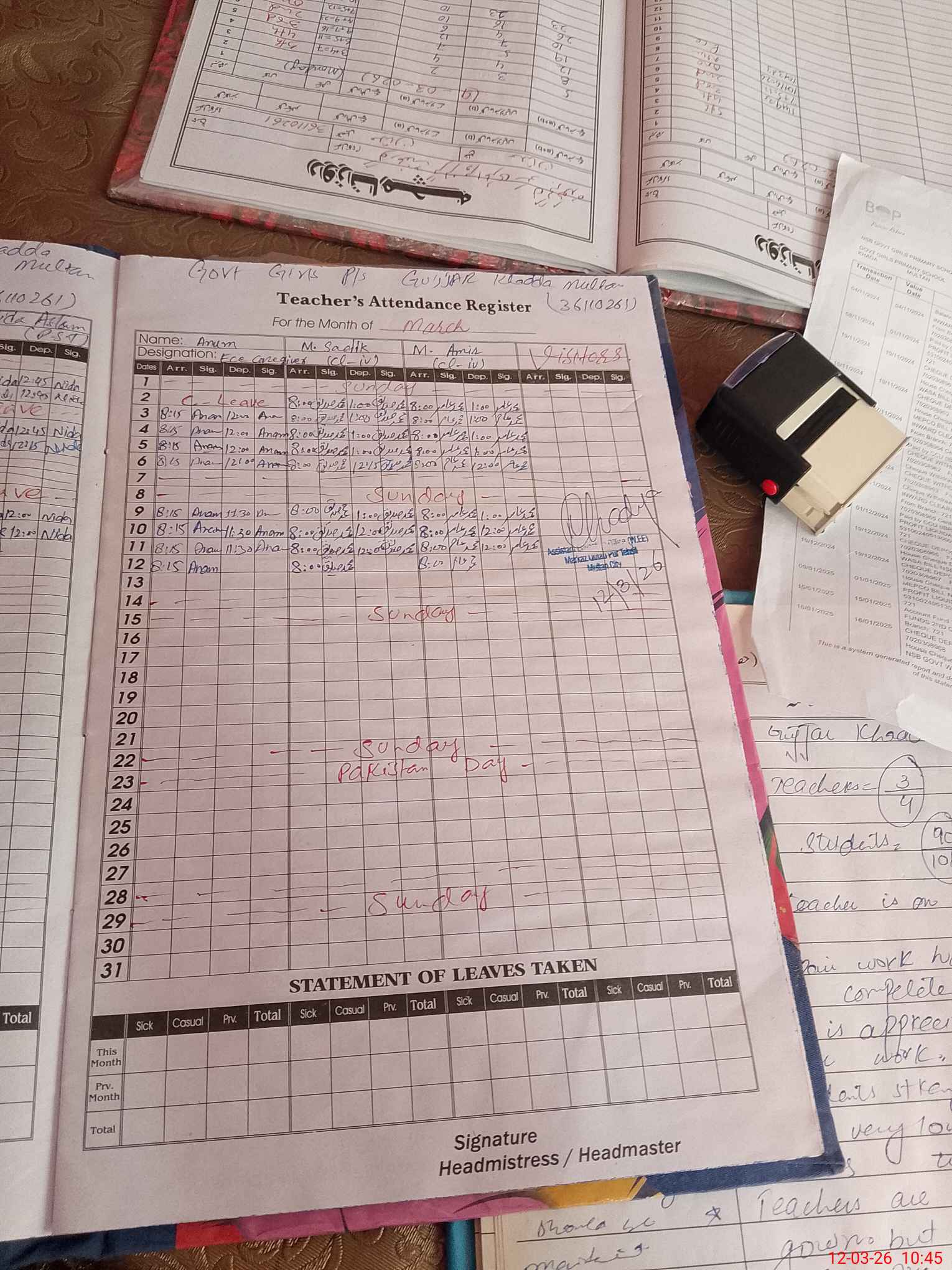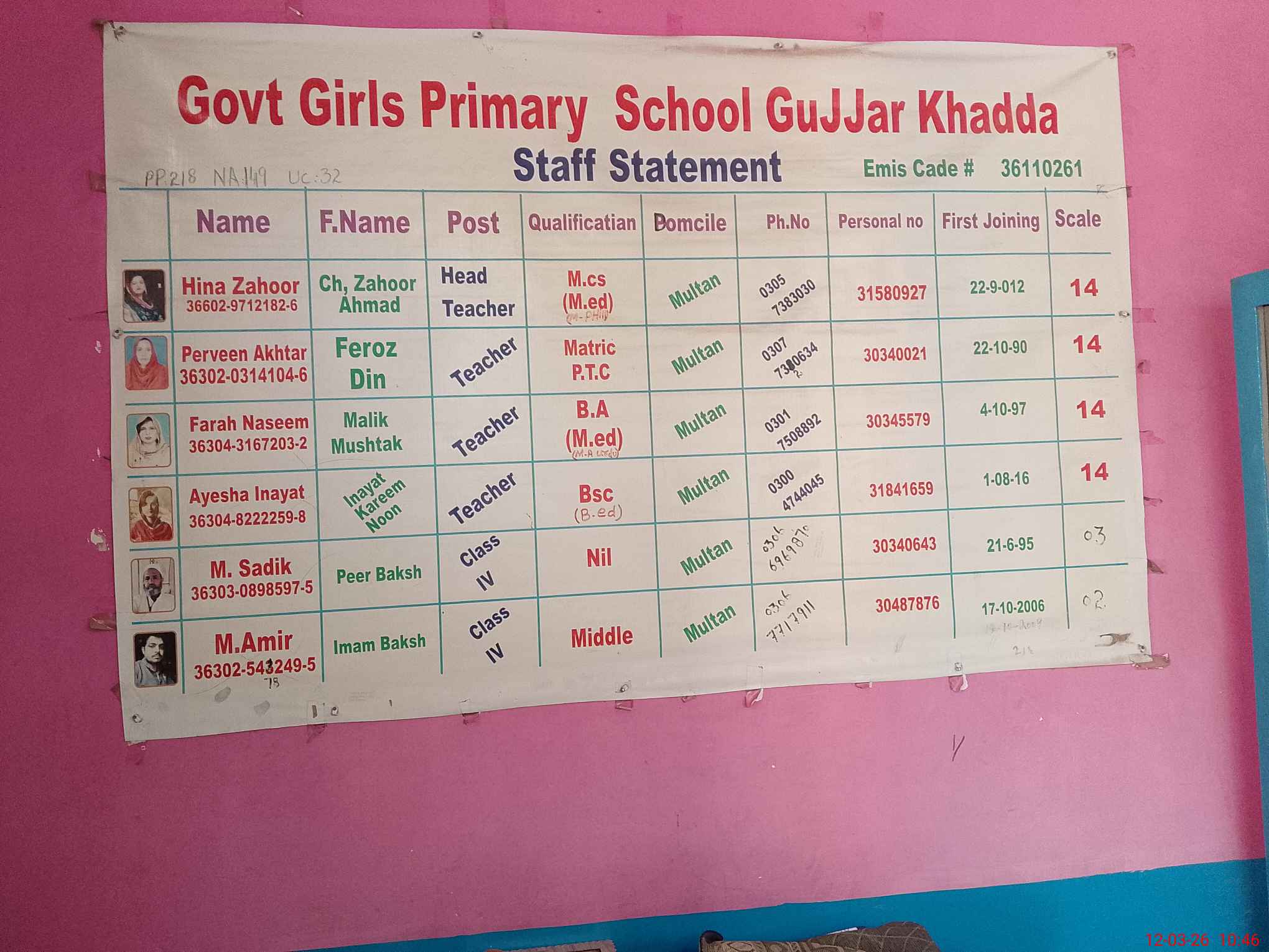 | EMIS Code: 36110261 | Name of School: GGPS GUJJAR KHADA MULTAN | |||