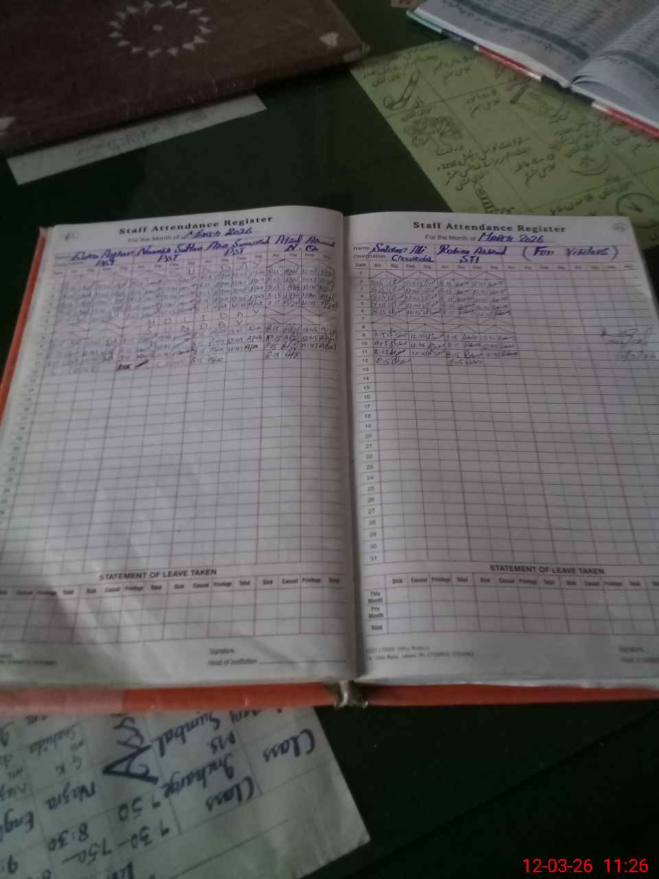 | Leave | Duty | Absent | Maternity | Medical | Ex- Pak |