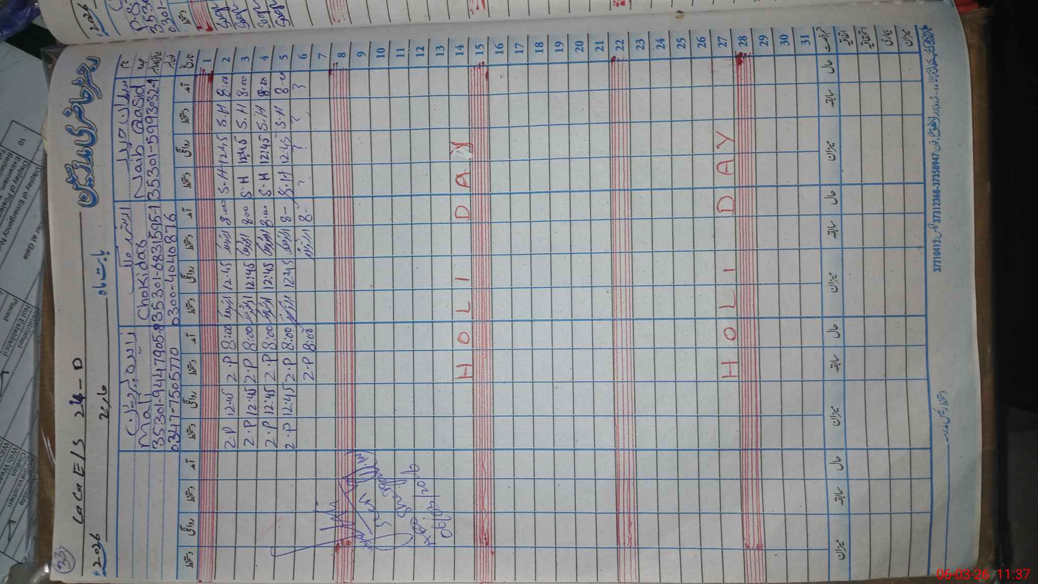 | CNIC | Full Name | Designation | R/C | Absence During Last Calender Month |