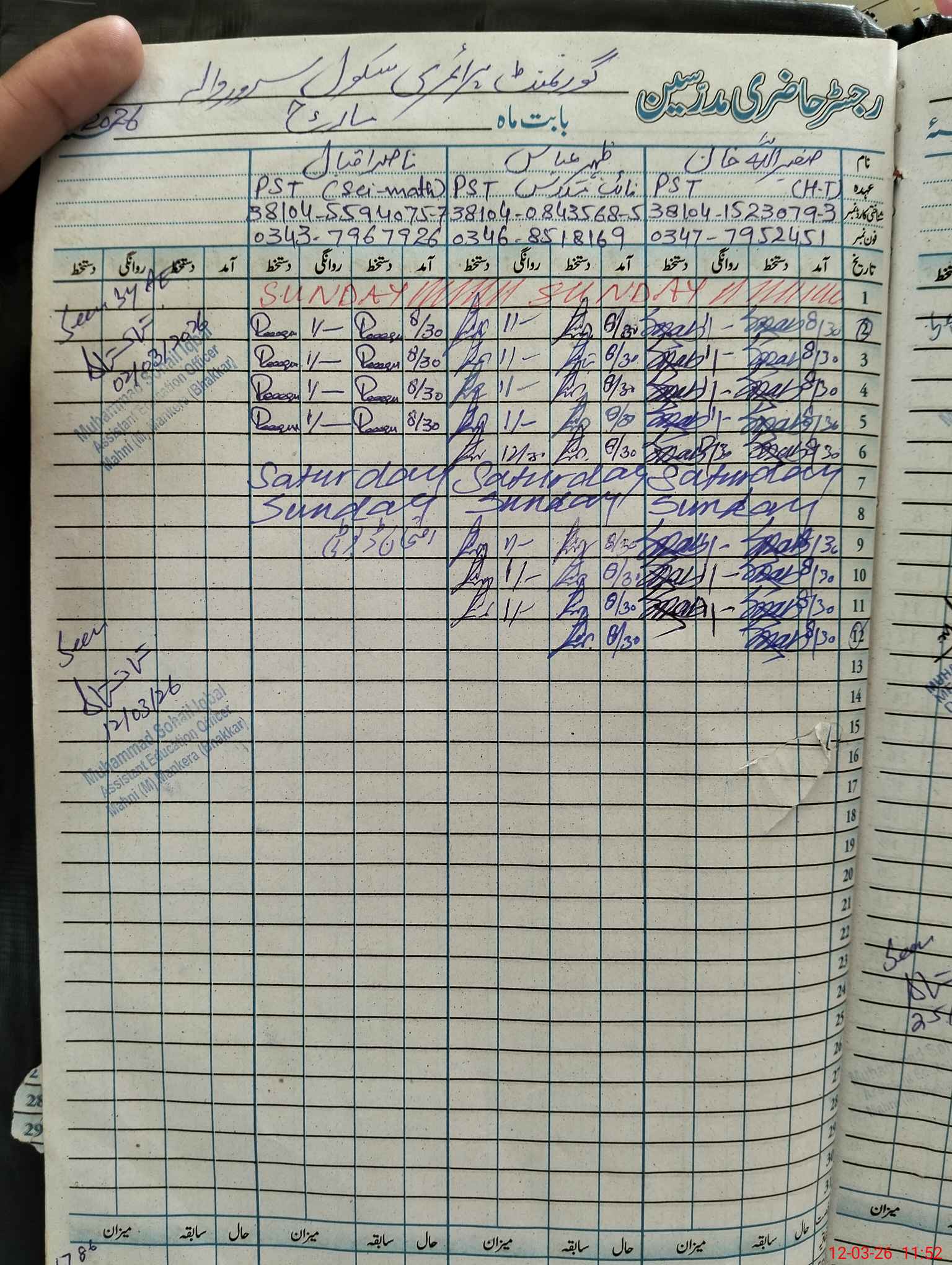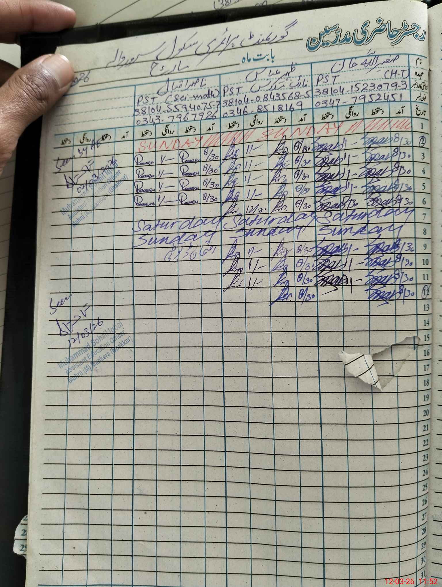| Name: SA**** UL**** Designation: (School Headmaster's/Headmistress's) PTC/JV Phone/Cell Number: 03**** |