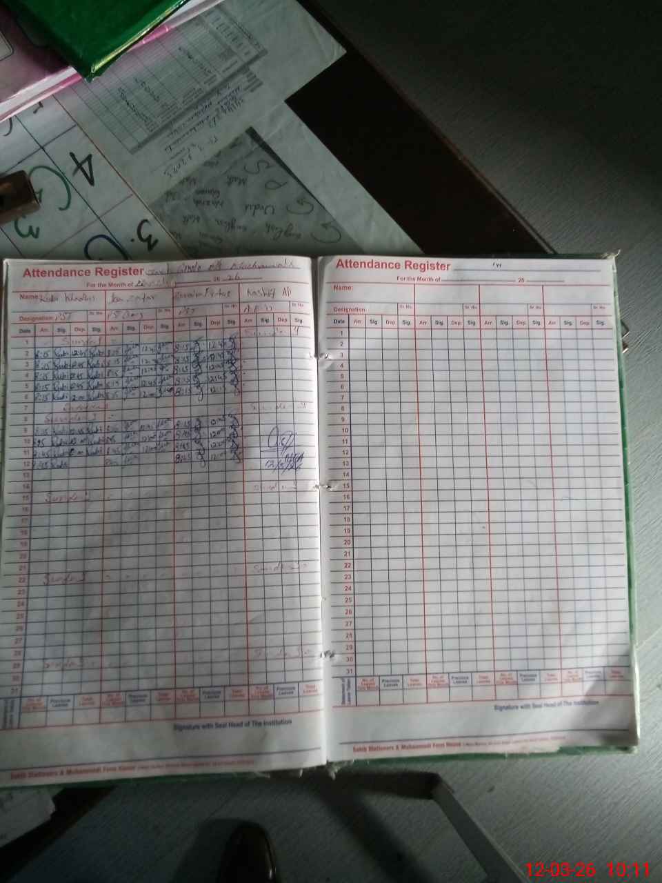 | CNIC | Full Name | Designation | R/C | Absence During Last Calender Month |