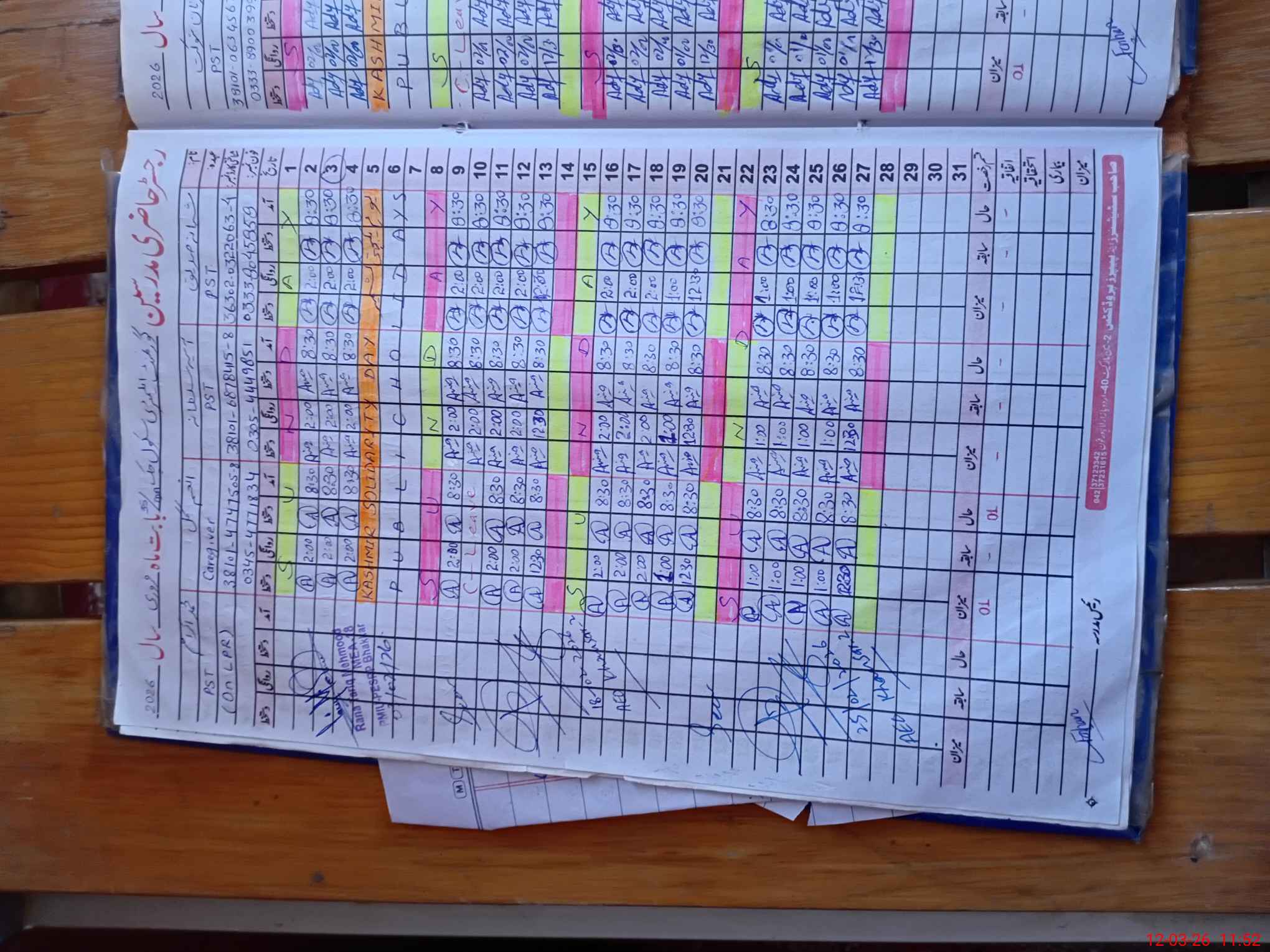 | CNIC | Full Name | Designation | R/C | Absence During Last Calender Month |