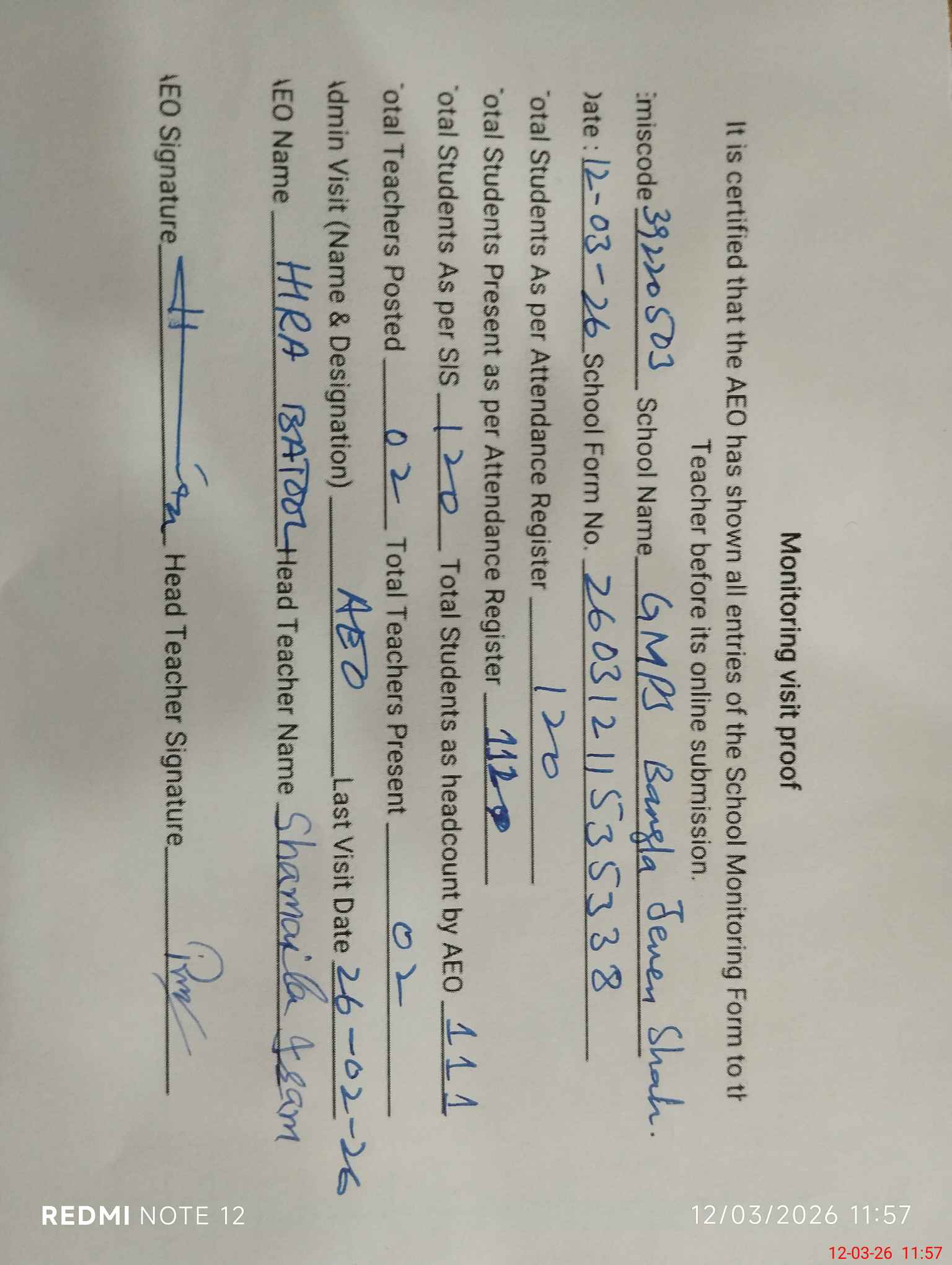 | EMIS Code: 39220503 | Name of School: GMPS BANGLA JEVAN SHAH | |||