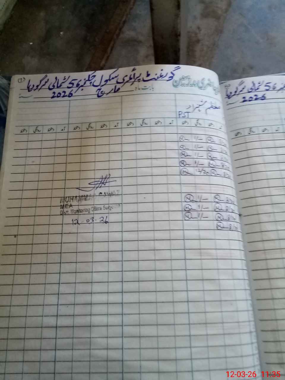 | Monitoring Date: 12-03-2026 | Start Time: 12-03-2026 11:31 AM | End Time: 12-03-2026 11:52 AM | Name of MEA: MU**** NA**** | |