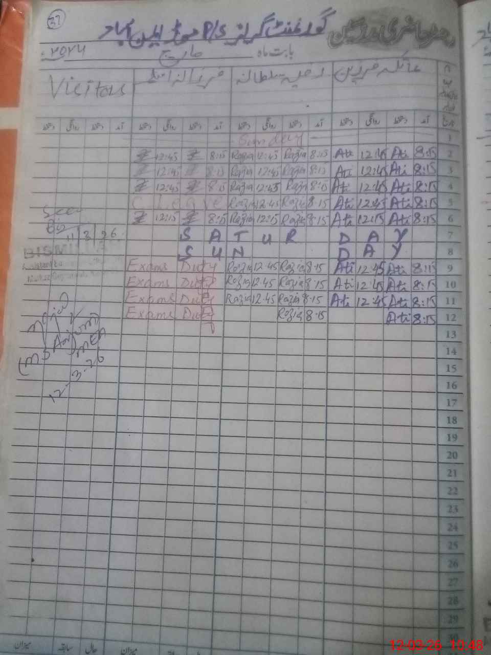 | Leave | Duty | Absent | Maternity | Medical | Ex- Pak |