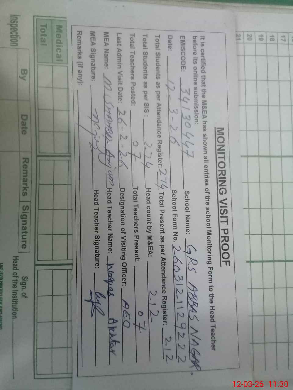 | EMIS Code: 34130447 | Name of School: GPS ABBAS NAGAR | |||