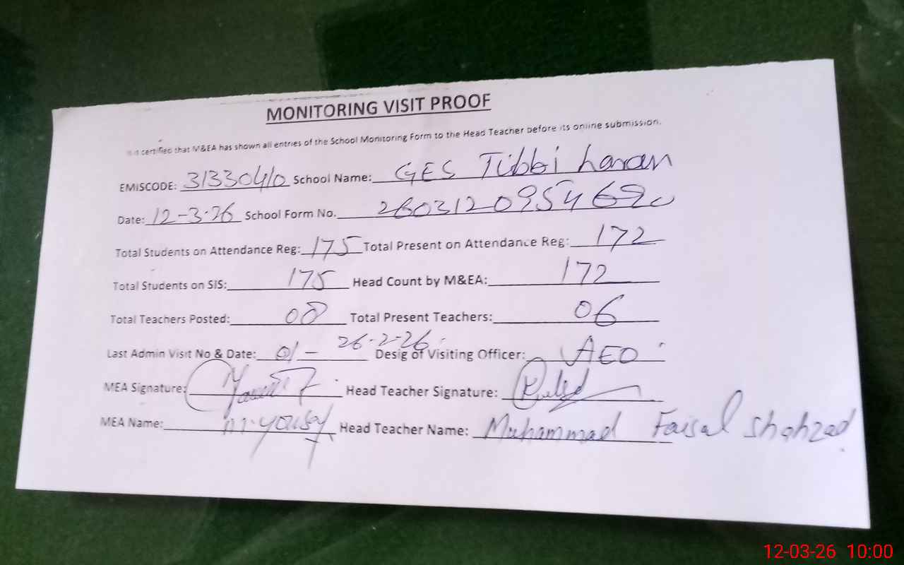 | Attendance Register | Head Teacher | MEA with School | Visit Proof |