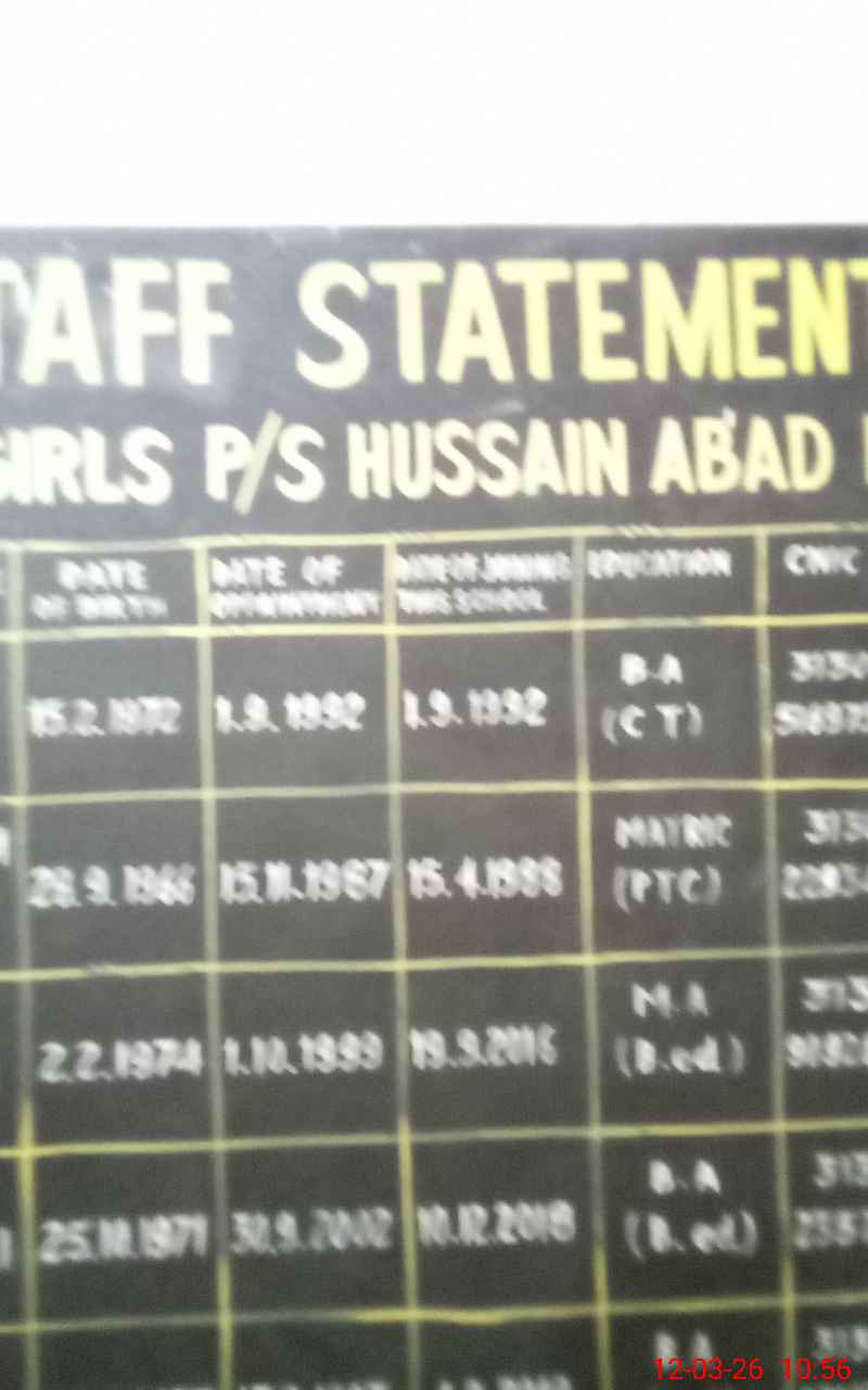 | EMIS Code: 31331096 | Name of School: GGPS MC HUSSAIN ABAD | |||