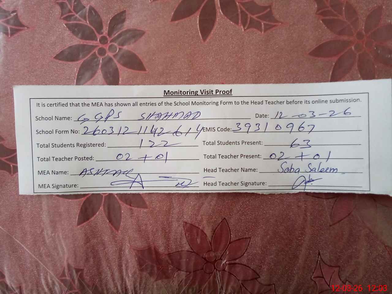 | EMIS Code: 39310967 | Name of School: GGPS SHAHMAD | |||
